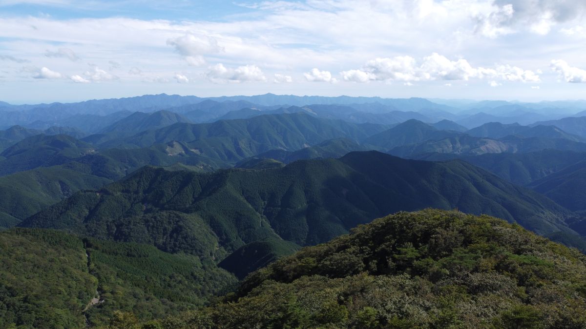 空撮で北東側の景色。大峰山脈はこっちだと思うんだけど、かなり遠くに見えてる山脈がそうなのかな!?