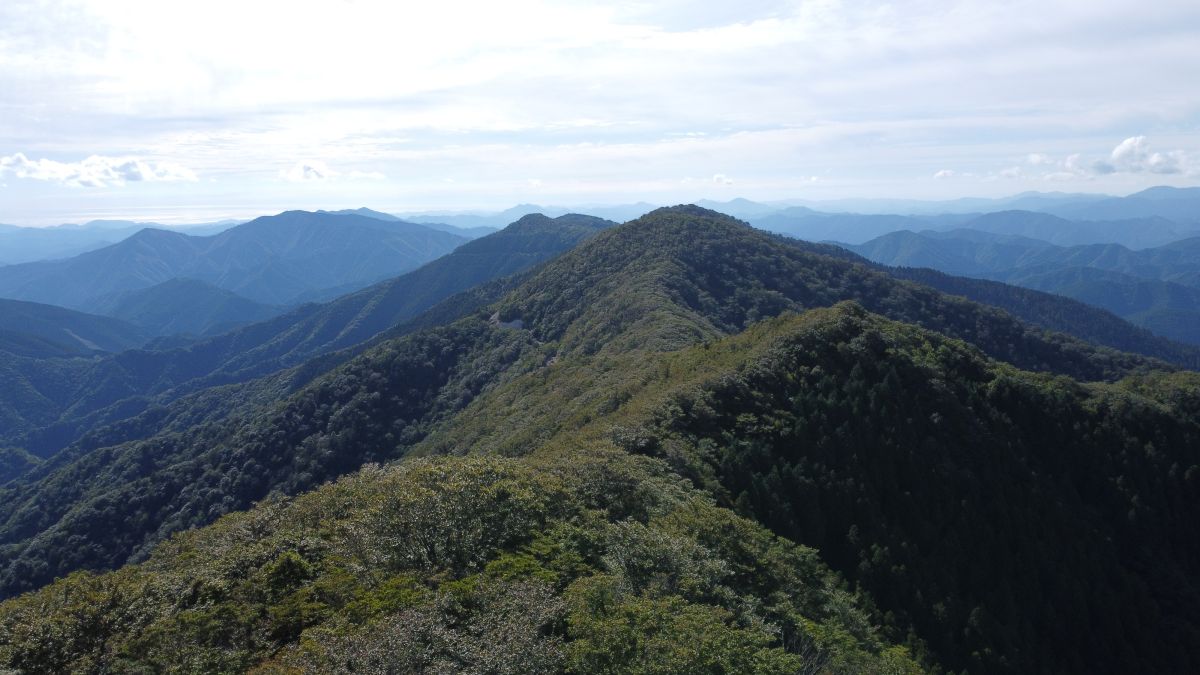 最後に空撮で果無山脈の稜線を撮影してみた。縦走もかなりのアップダウンがありそうな感じだね