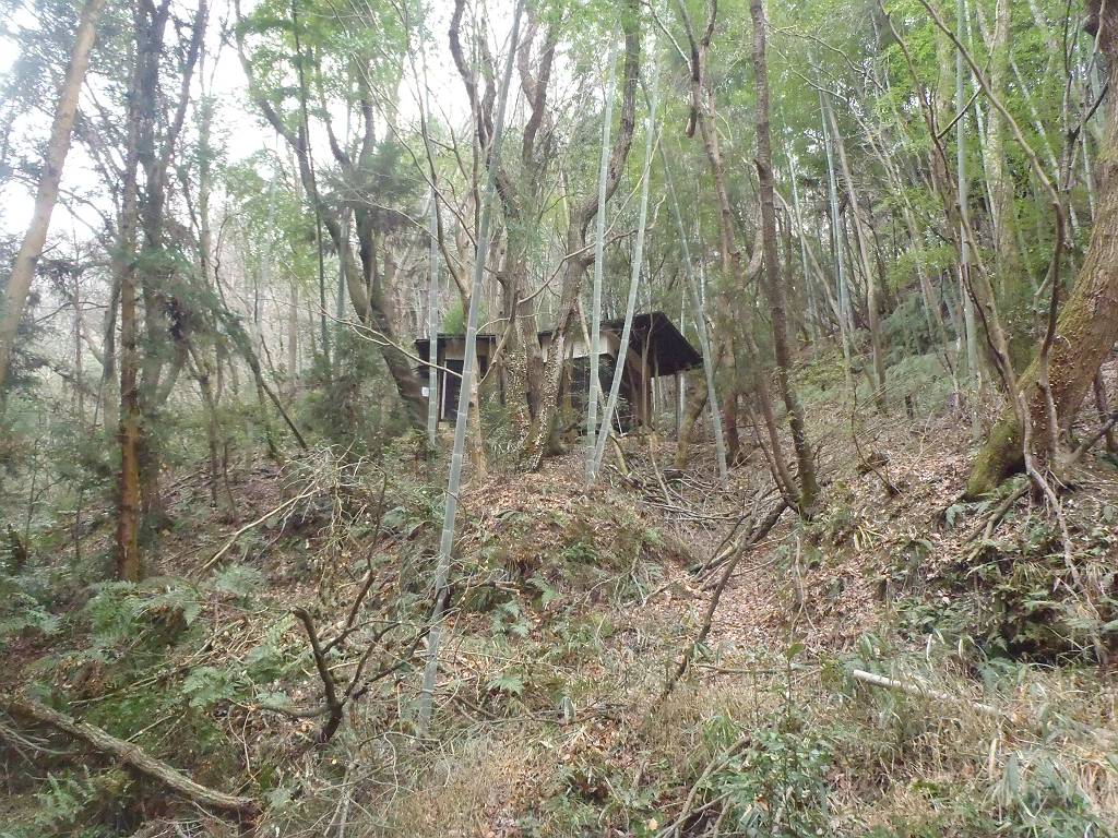 右の尾根途中に小屋があった