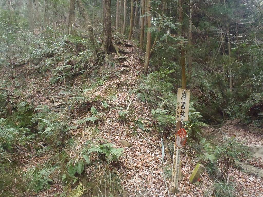 一蓋被より星田山のほうへ向かうとすぐ割林道への分岐の道標があるので従って左へ