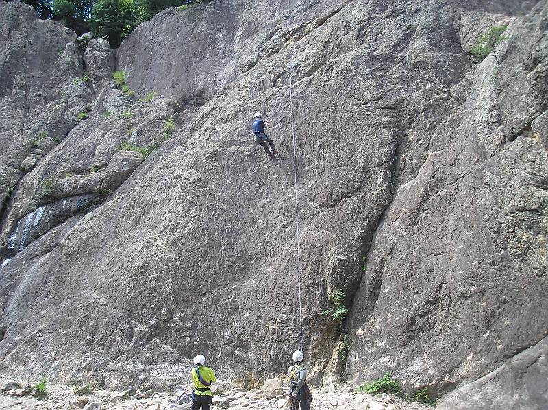 蓬莱峡に行くまでに広場があり、画像も載せていますがそこの岩景色は最高にグッドです!ここの岩場は崩れやすくアイゼンワークの練習場所にもなっているようです。さてさて、蓬莱峡に着き、初の岩登りしてみました。怖さもありましたが、どちらかというと最初は腕で登ろうとしたために腕の疲れがどっときました。三点確保は難しいですね。しかし、ここで少し教えてもらったおかげで穂高や岩場のある山で動き方がわかるようになってきました。しっかし、高さがあるとやっぱひょぇー!ってなっちゃいますね。ちなみにここはBBQする場所でも人気あります