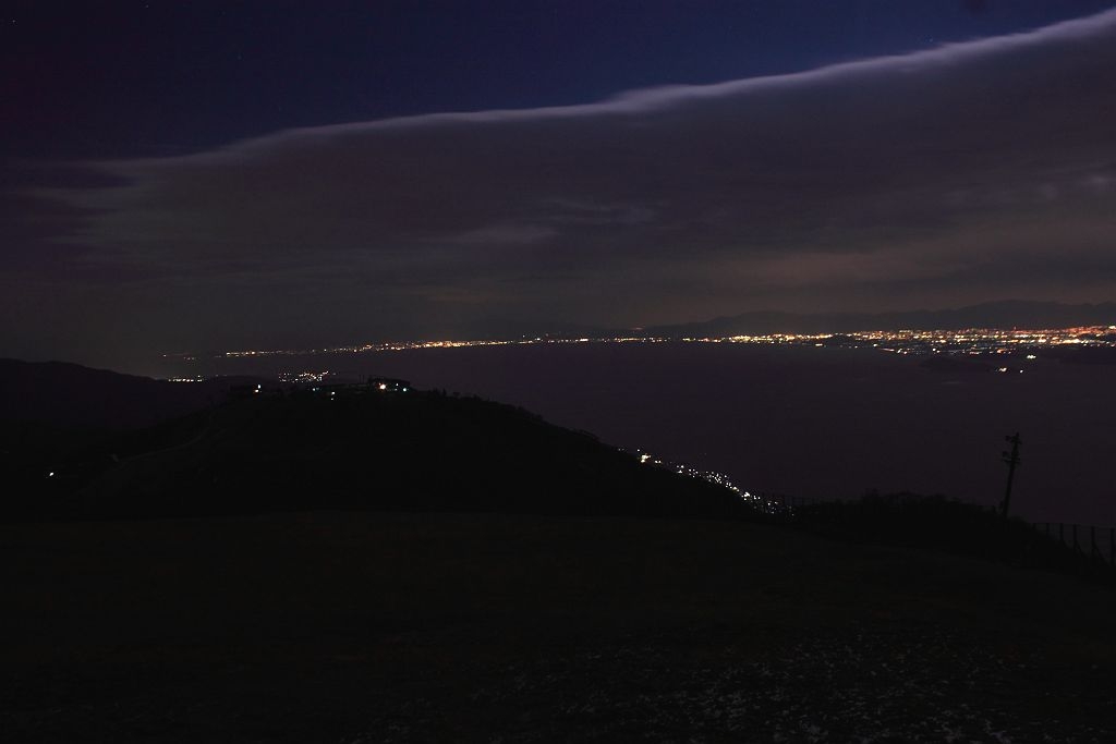 ナイトハイキングで夜景撮影をかねて蓬莱山へ行ってきました。アプローチまでの道は落石が結構あって車で登るのは大変ですので、途中から歩いたほうがいいと思います。今回はナイトハイキングなので最短ルートで蓬莱山へ登りました。登りは結構な急登が続きますが距離が短いのでペース配分をスローにするといいかもしれませんでした。ルートは踏み跡はしっかりあるので迷うことはないと思います。スキー場に出ると風がビュンビュン吹いていてとても夜景撮影できるレベルではなかったです。あとはさすがに11月なので寒くてシェルターの中でランタンをつけて温まりました。時間が経ってなんとか風がやんだ時に撮影開始。時折吹く風がおさまったところでシャッターを押してなんとか夜景を撮影できました。スキー場がオープンしていたらおそらく夜景撮影はできないと思いますが、とにかく撮影中も寒かったです。風と寒さが大変でしたが、明るいうちに登頂できて夜景撮影もできたので満足できた山行になりました。