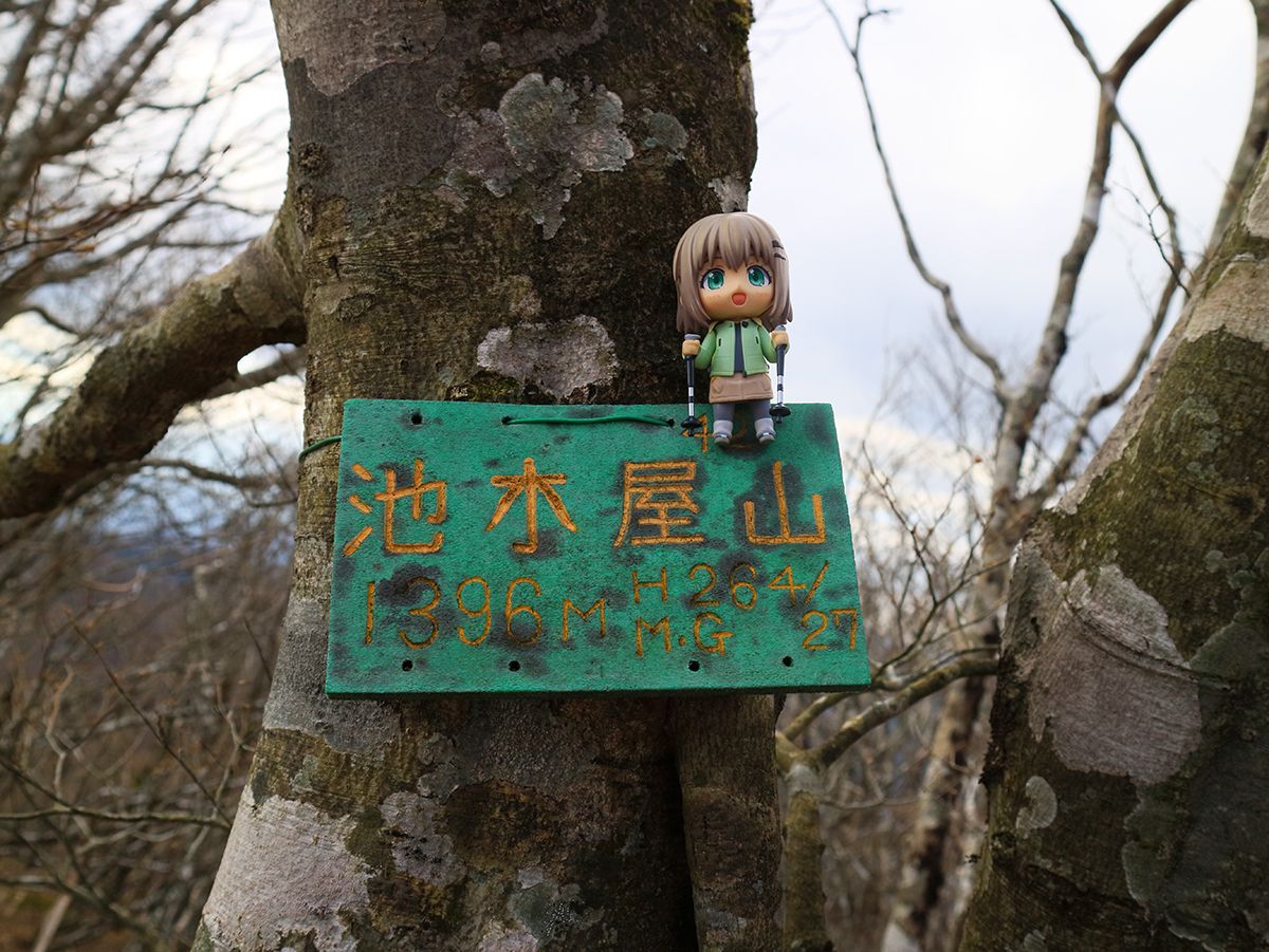 せっかくなので池木屋山の山頂プレートと雪村あおいちゃんを撮影しておいた