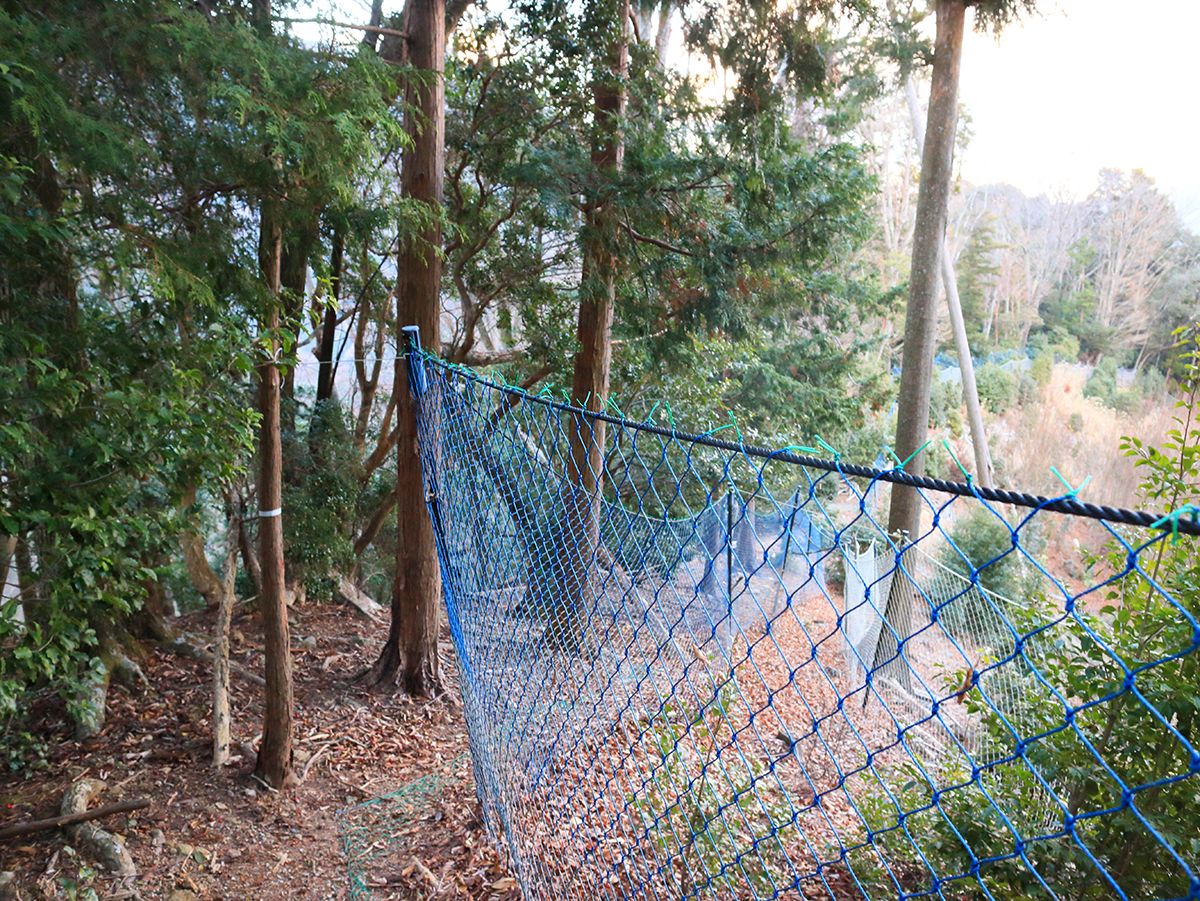 ネットが倒れてたり穴が開いてたりしてる所があったのでそこからネットの中に入った。踏み跡があるので従って下っていく