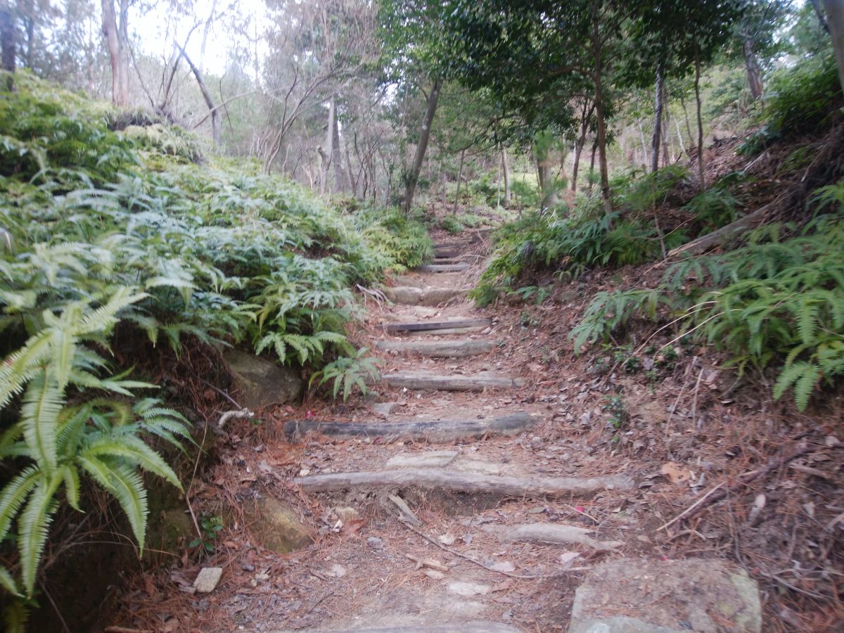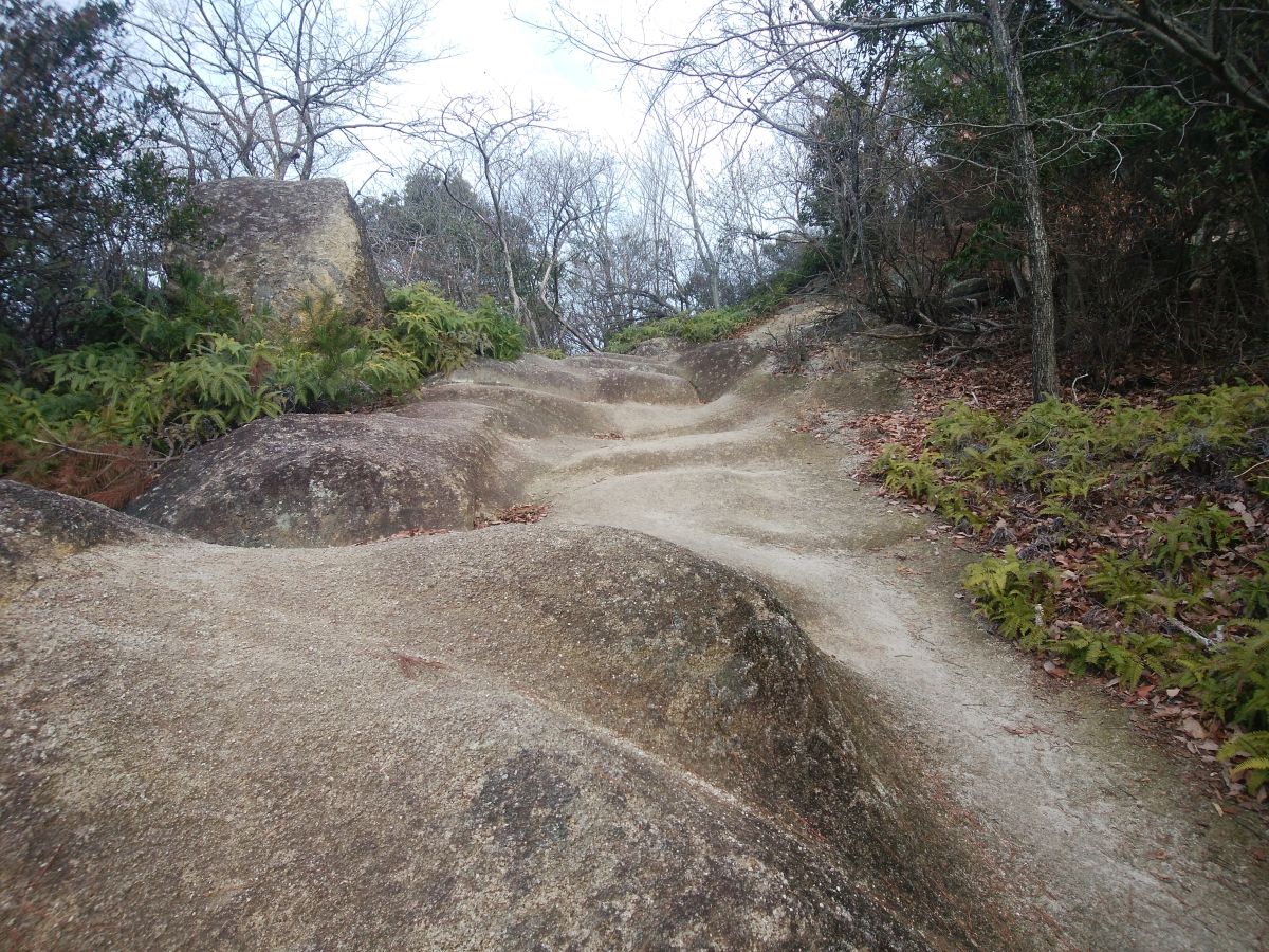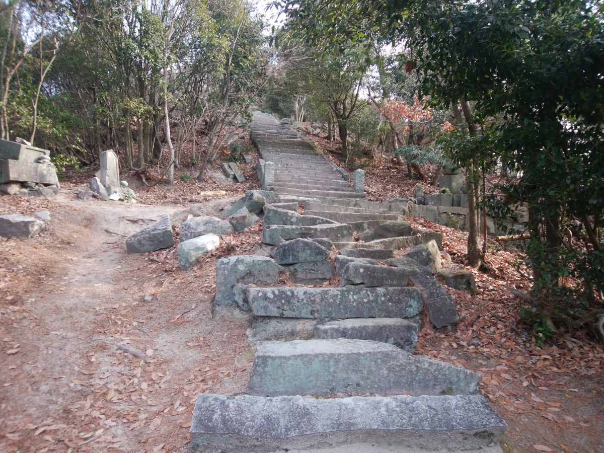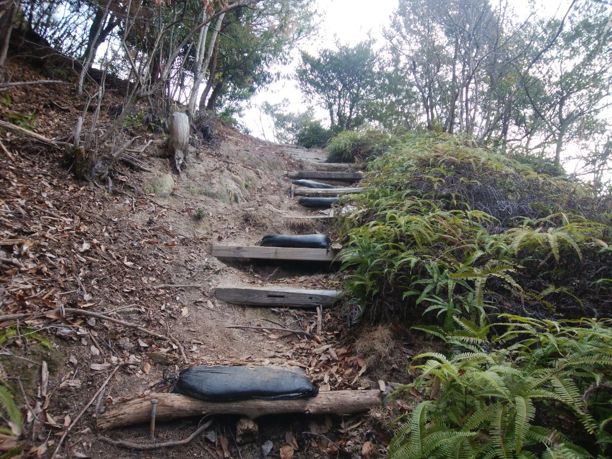 展望地からさらに登っていくと石の階段になって登っていく