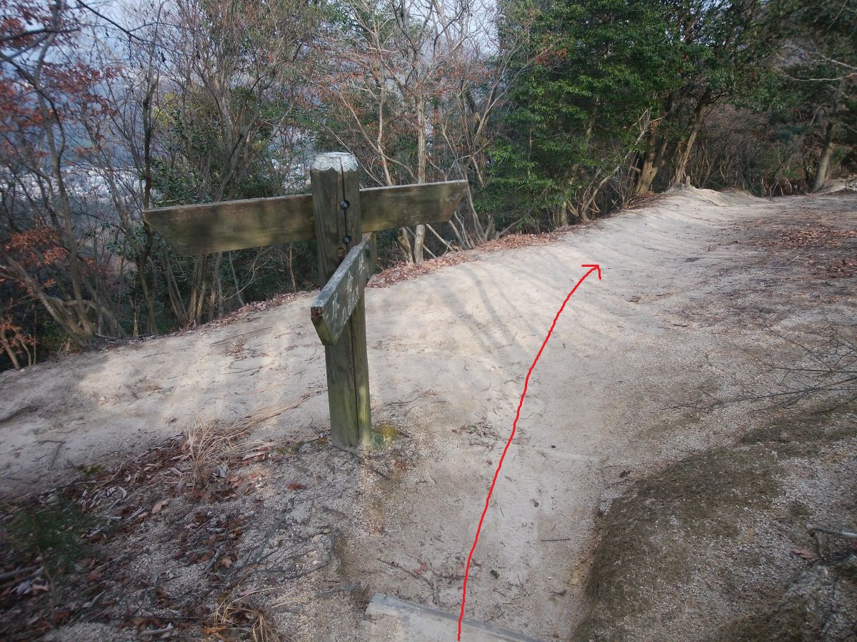 ここを東屋、岩谷観音方面へ。道標に従って左へ登っていく