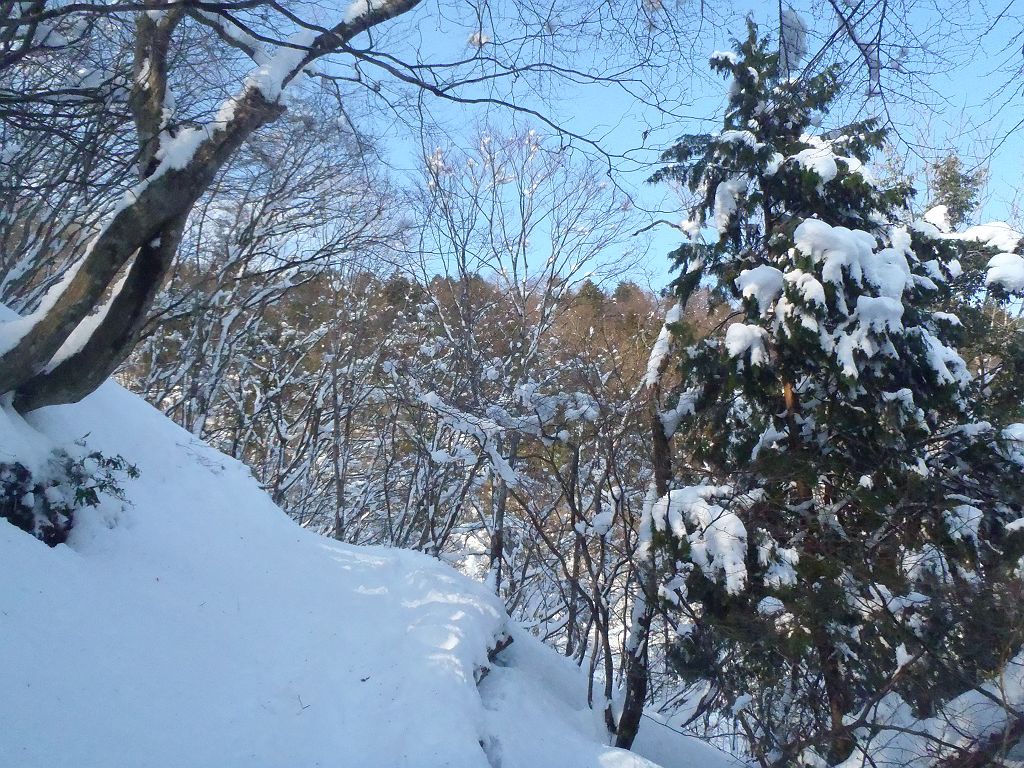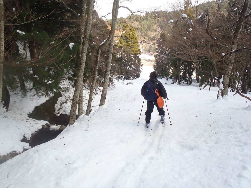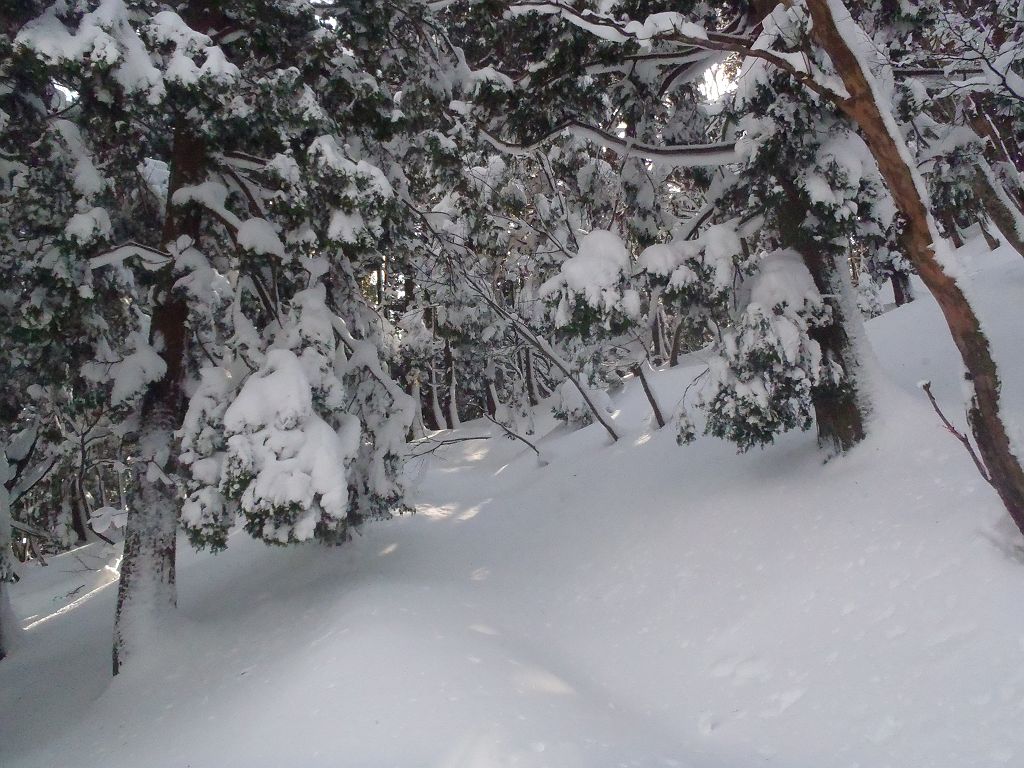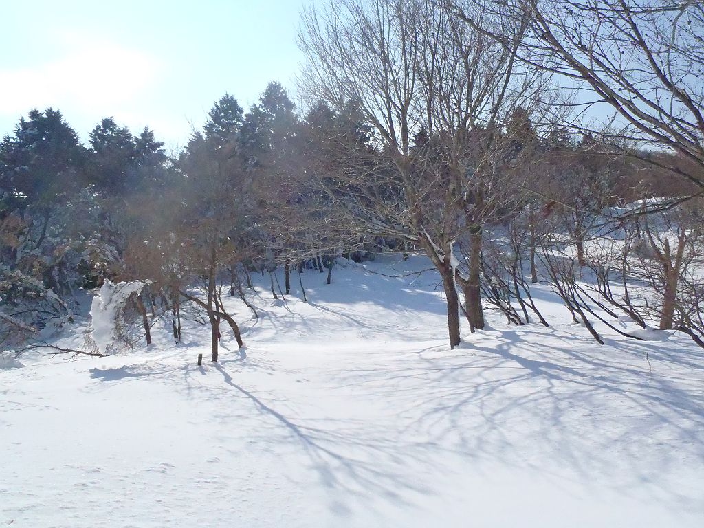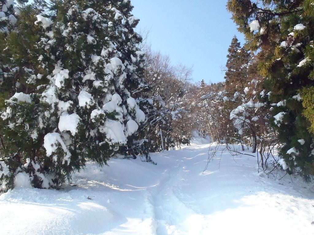 蛇谷ヶ峰の最短ルートである朽木スキー場からスキー登山をしました。同行者は初山スキーでの登山でスキーも5年ぶりとか。私も今年初のスキーなので、一回だけ朽木スキー場で滑走して感を取り戻しました。二人とも余裕で滑走したので早速入山。今日は気温が高く青空だったので青と白のコントラストを期待したけど、朝から樹林から雪とけて落ちていました。もちろん樹氷も解けていました><トレースがあったので山頂まであると思いきや、途中で全くなくなってそこから20cmほど沈み込む。雪に沈み込んだ急登でもはやバテバテ。少しして同行者が前にいってくれたので楽できたが、今度はルート途中で倒れた樹林が邪魔。そんなこんなでかなり時間食いました。急登が終わってからは人が踏み入れない白銀の世界だったが、かなりいい感じだった。山頂に到着、ちょい休んでからスキー滑走。最初の下りはトレースの雪がカチカチだったので同行者がこけて大変なことに・・・気を取り直して0.2km地点から0.7km地点まで気持ちの良い滑走を15分程度!急登ルートはショートカットしたり撮影したりしてスキー場まで。結局、山頂から1時間弱という超スピードだったが、これには同行者もびっくりw今シーズン初のスキーだった大晦日は今年の〆というより始まりといった感じだった。今シーズンも何回も滑りたい!!!ちなみに本来は1時間程度のコースのようですが雪があるとこんなに違うわけです。