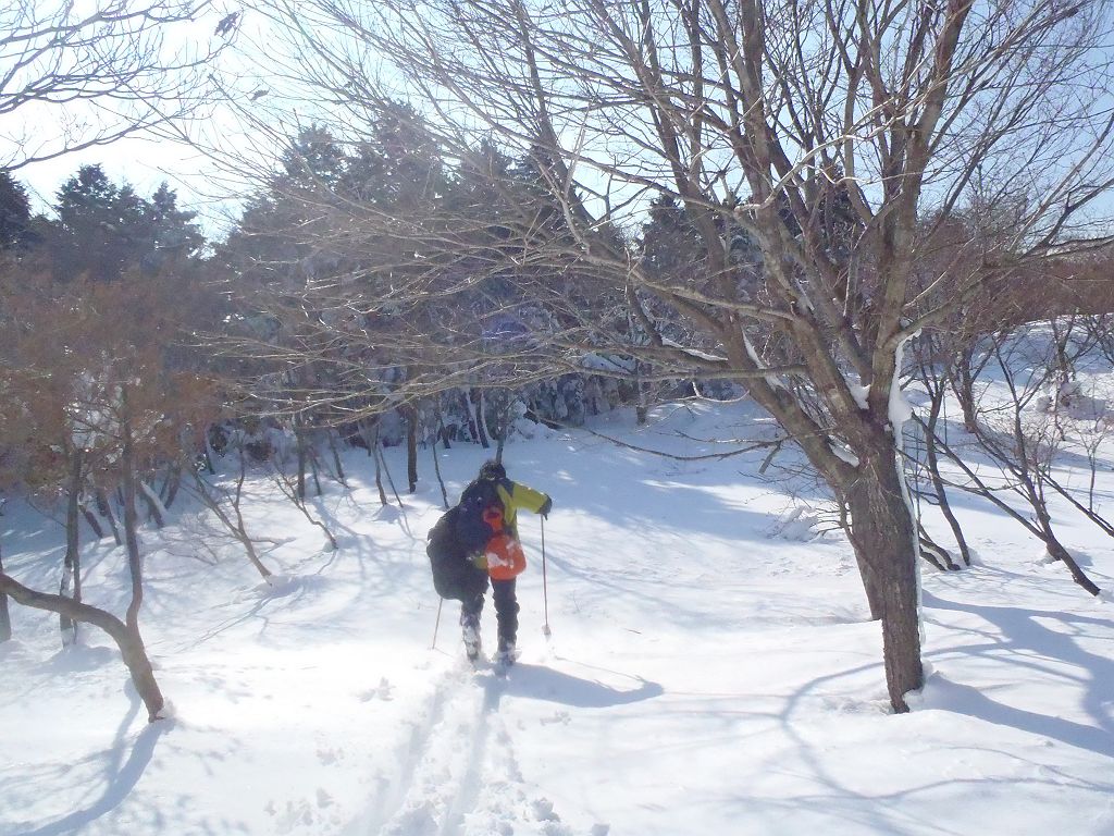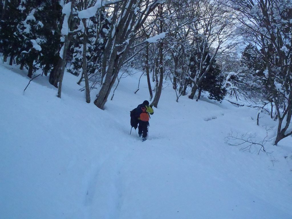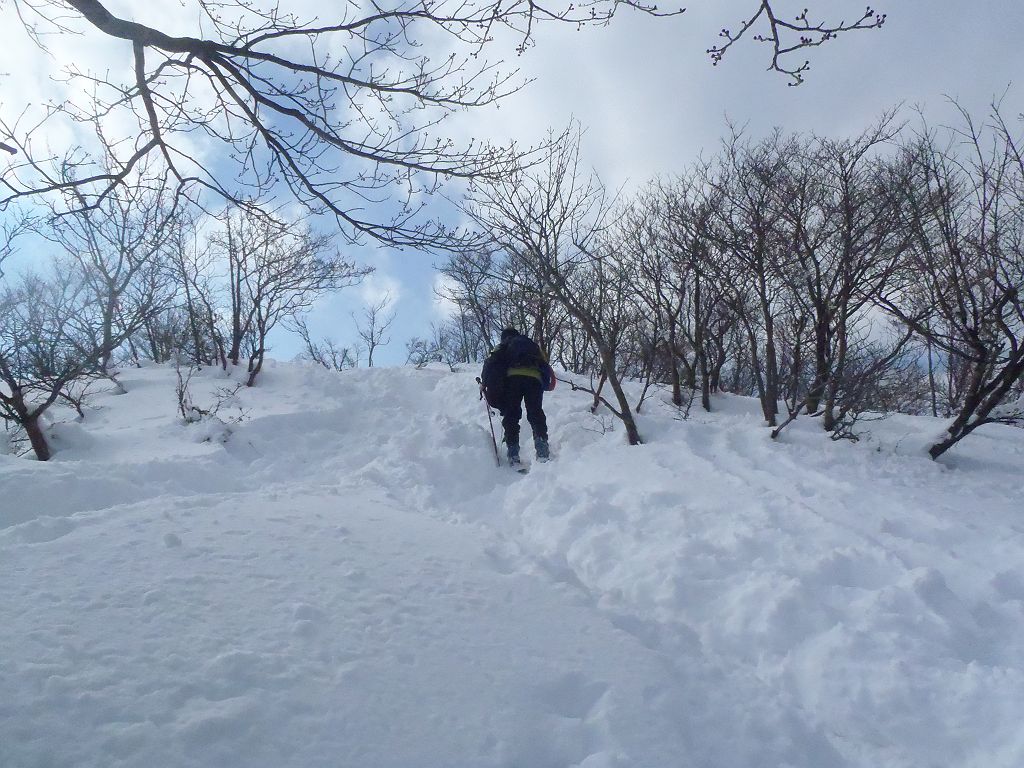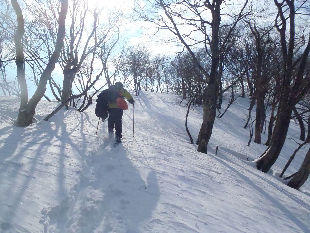 最初の急登はスキーで滑りにくい