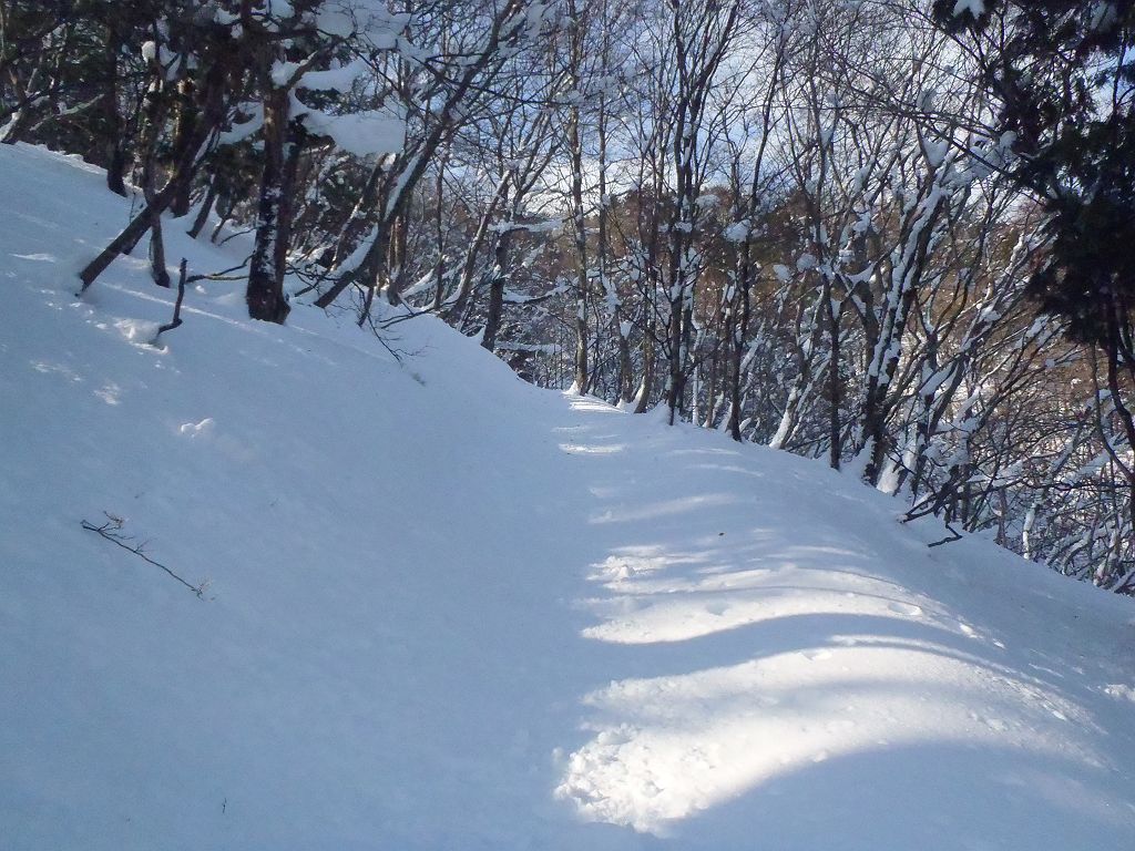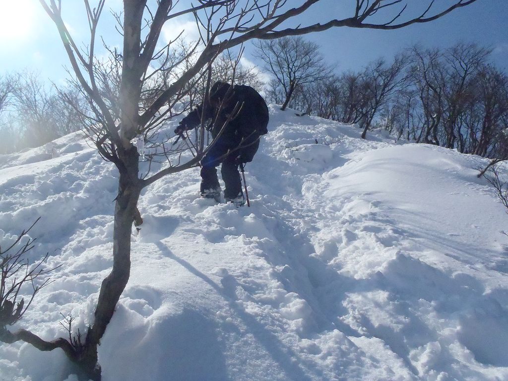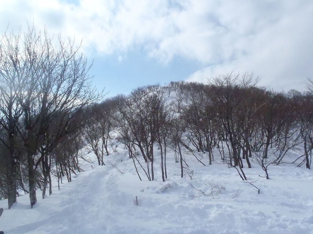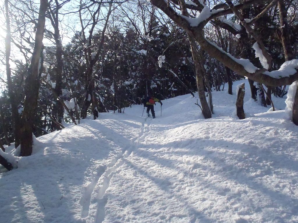 最初の急登はスキーで滑りにくい