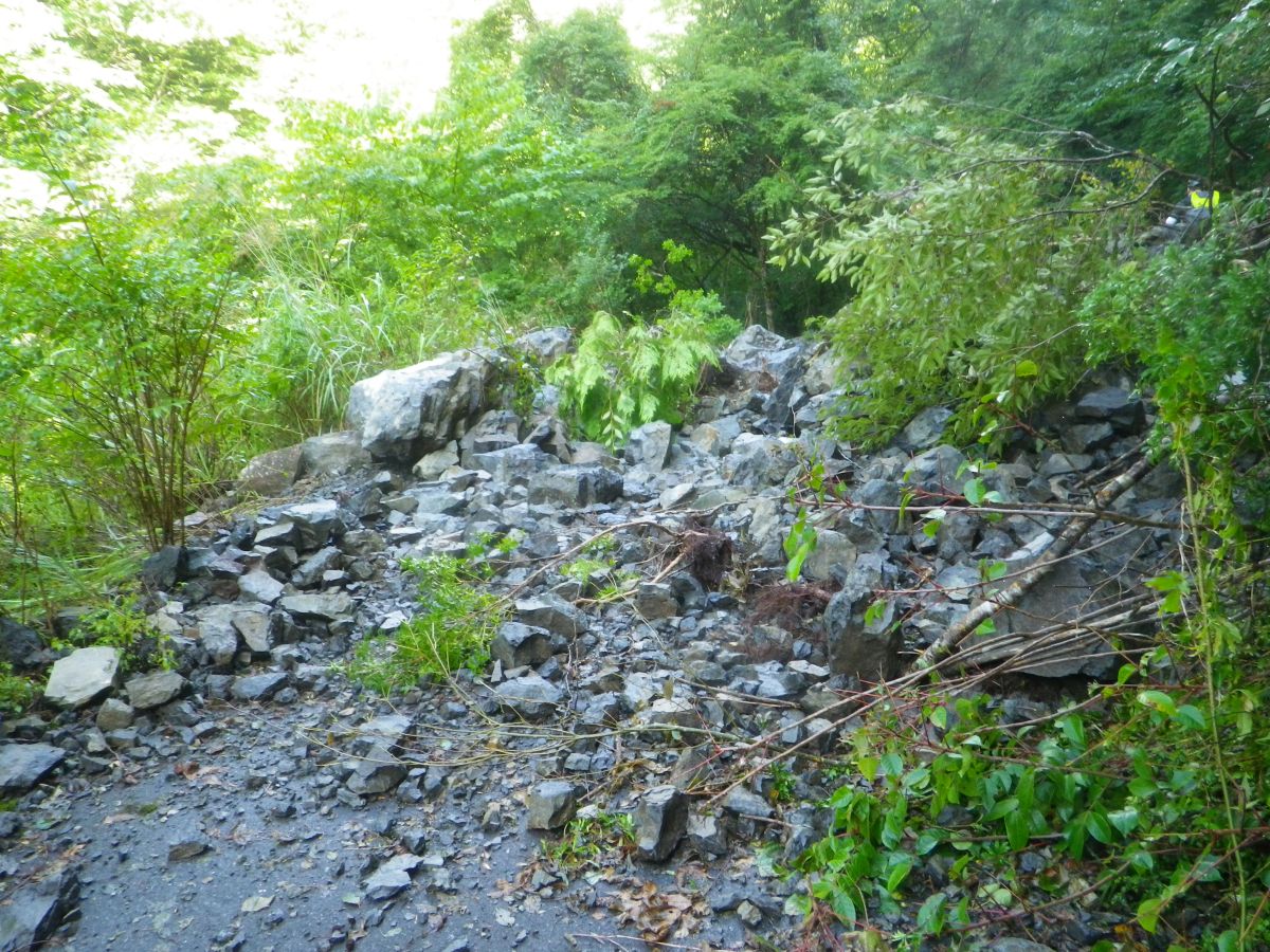 ここが土砂崩れした場所。すごいことになっている