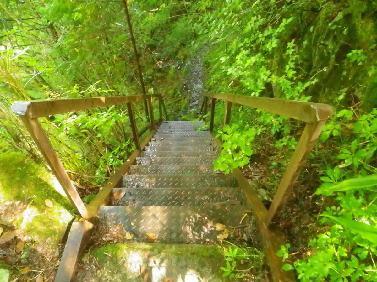 階段を下りていって入渓ポイントへ行く