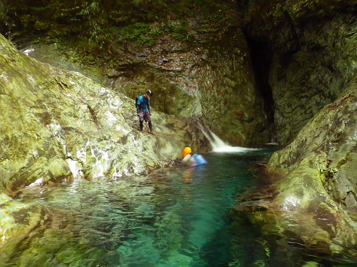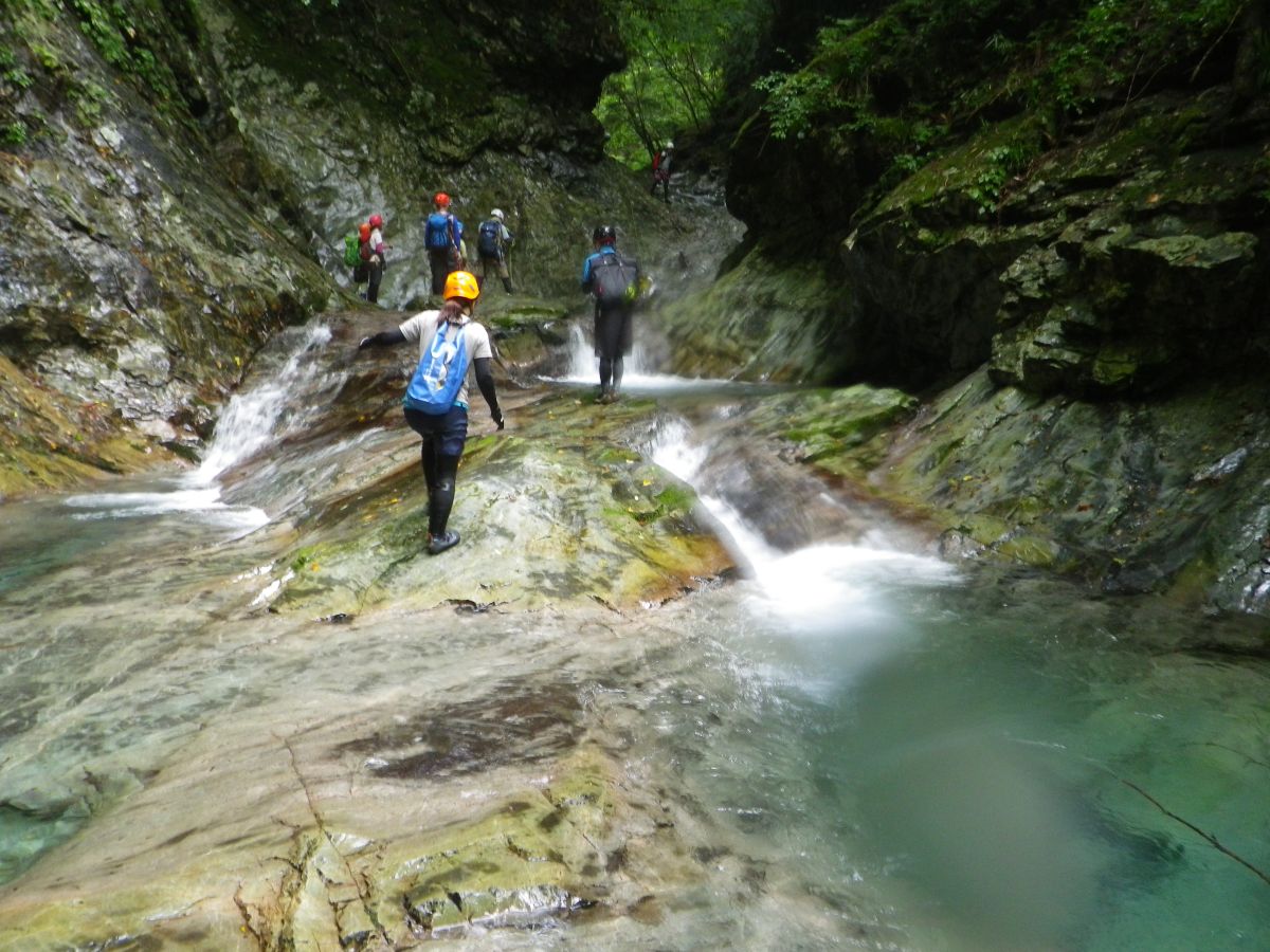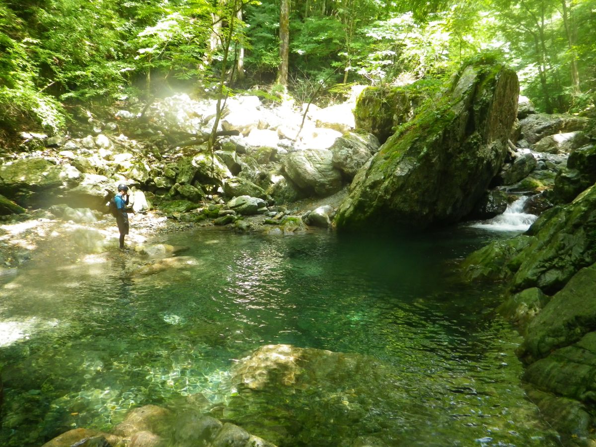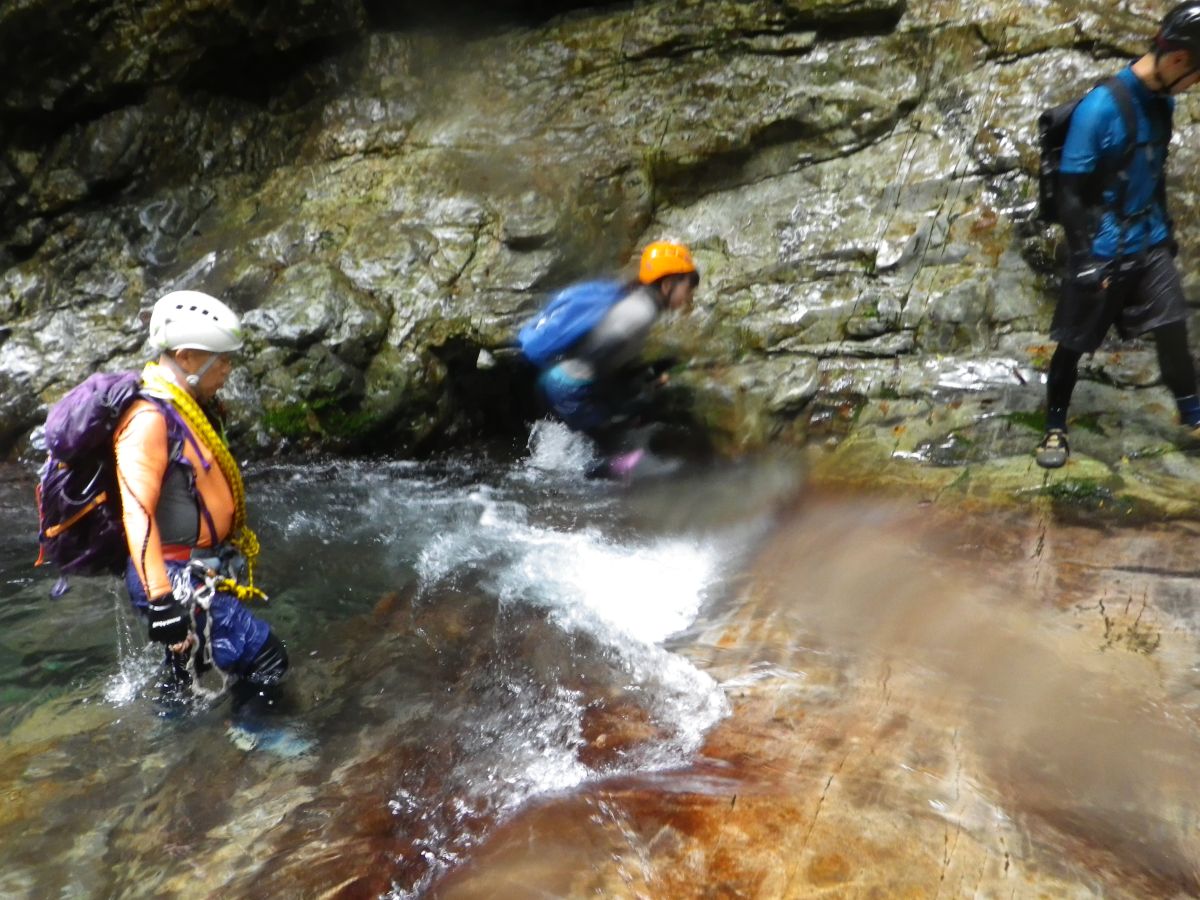 どんどん遡行して釜滝を目指していく。写真を撮りたいので少し後ろを歩いていた