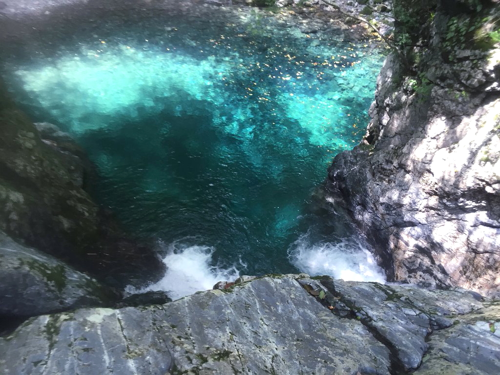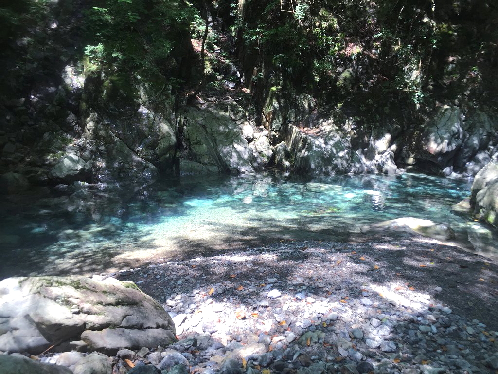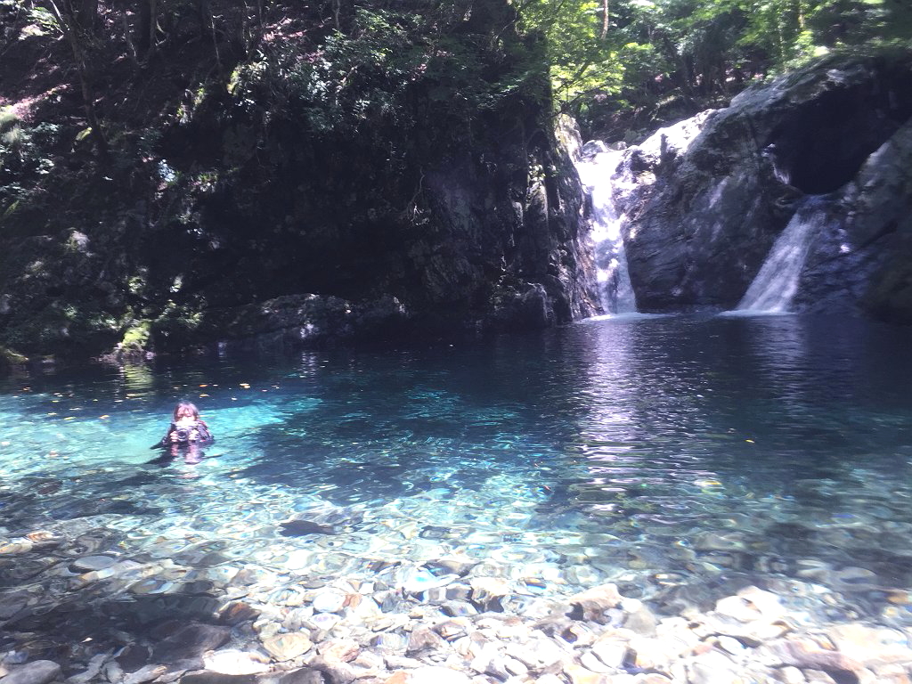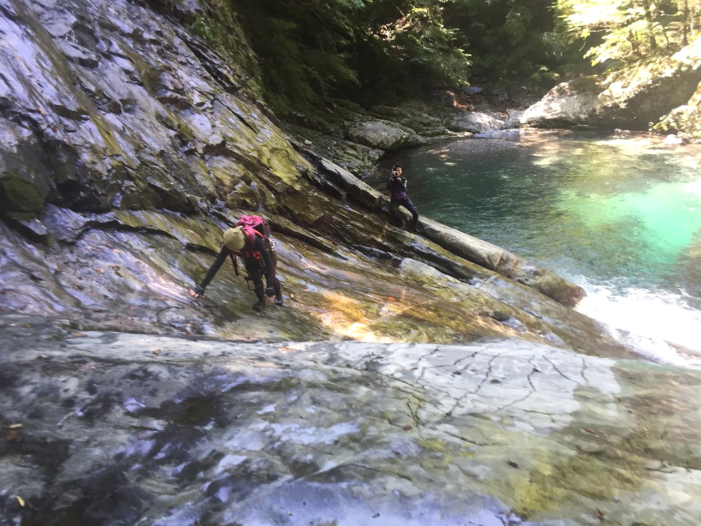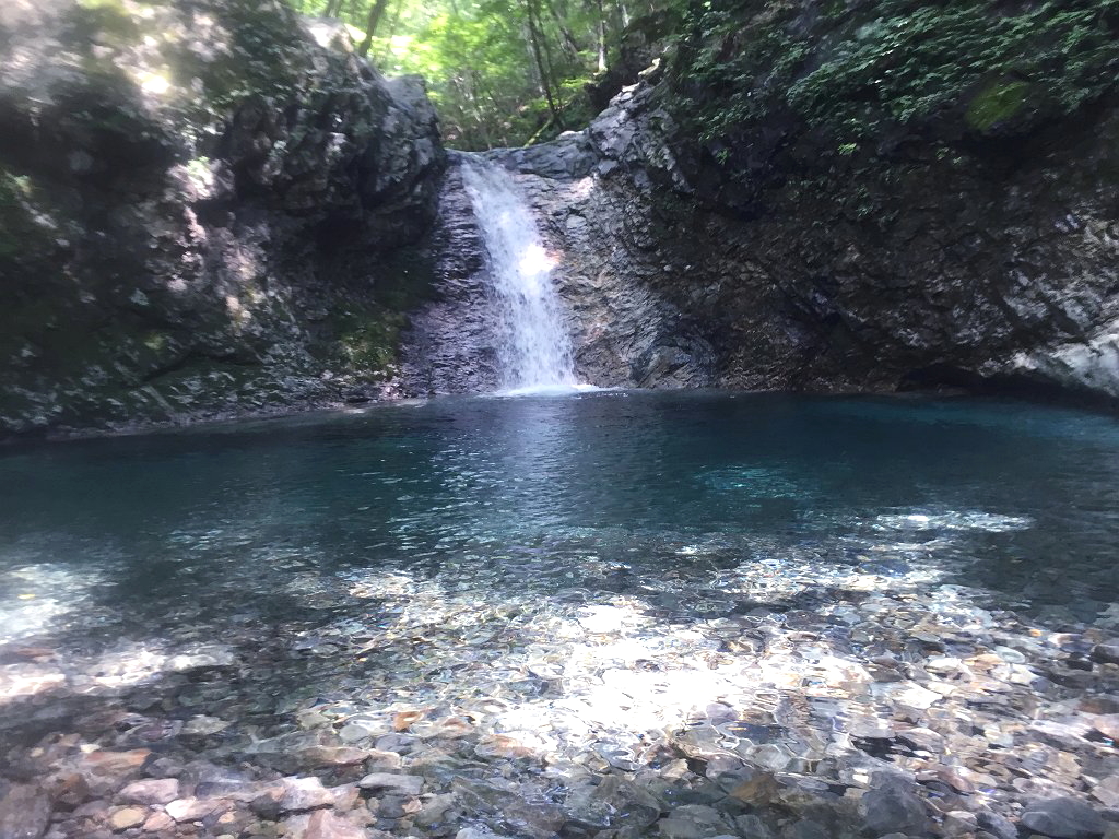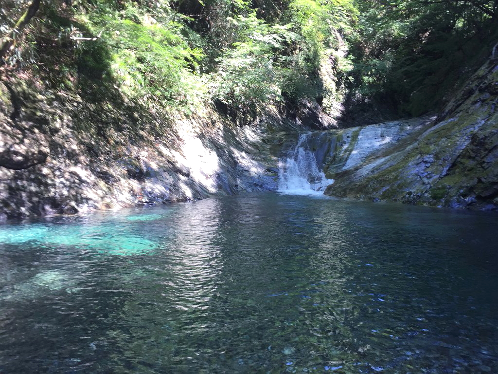 先日いった前鬼のようなコバルトブルーではありませんが、透き通った綺麗な大峰ブルーを見ることはできました。ちなみに釜滝は二つの沢が一つになる神秘的な滝でしたが、その上部のノウナシ谷側の滝も静かで神秘的な感じでした。そして赤鍋滝のスライダーが格別で超楽しかったです!