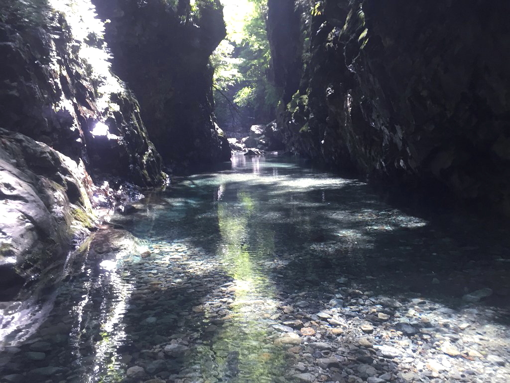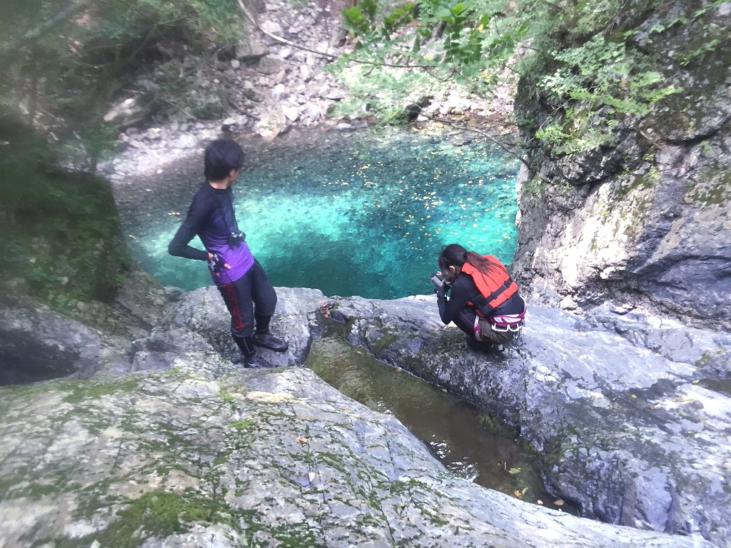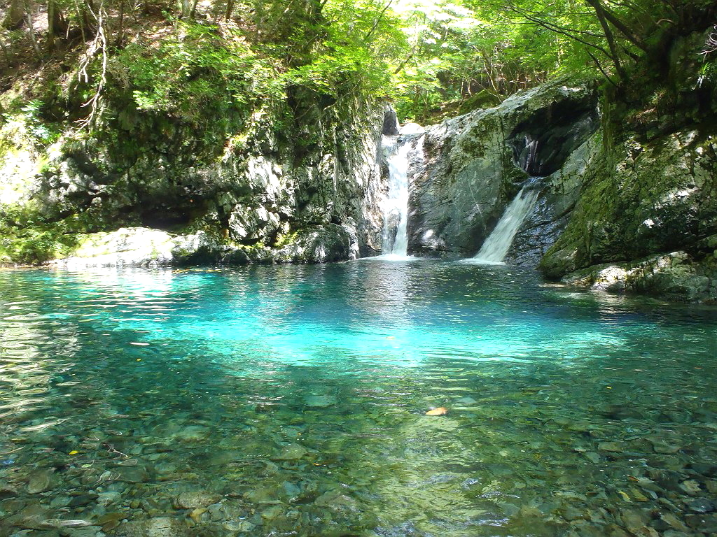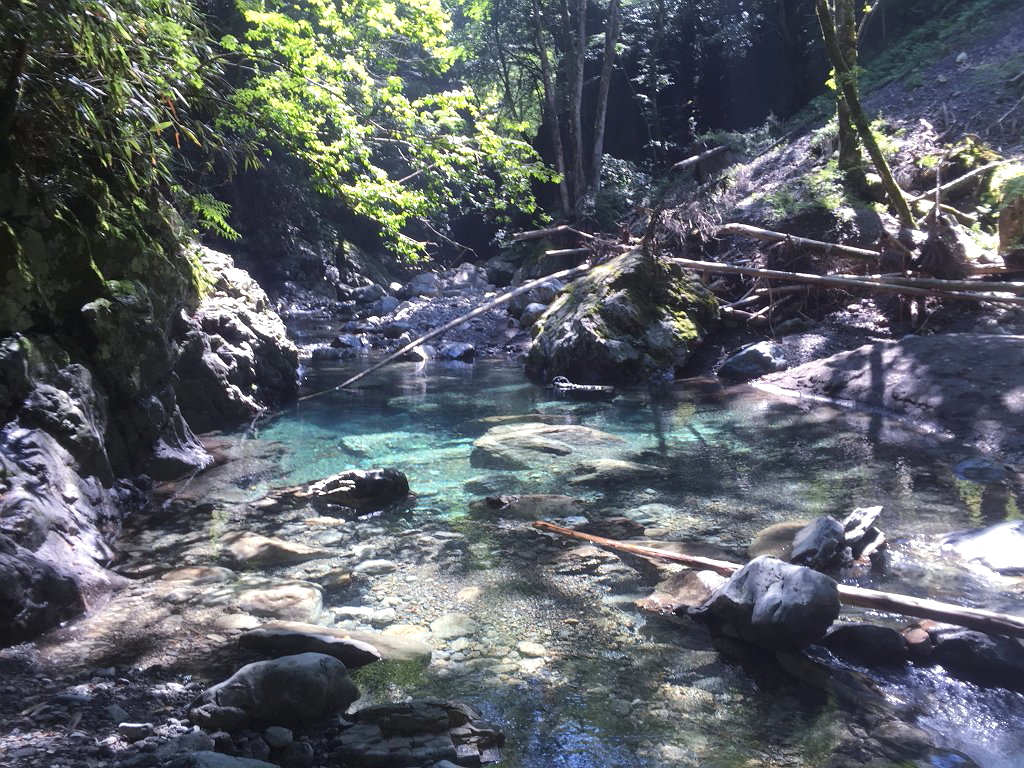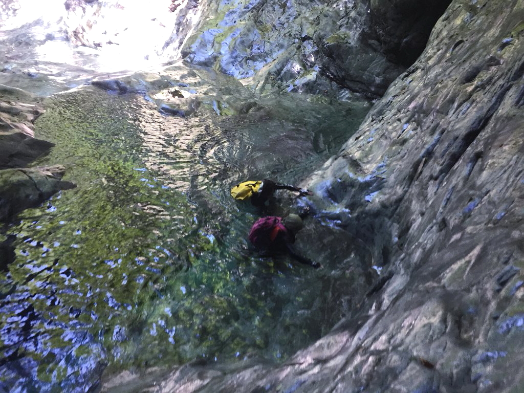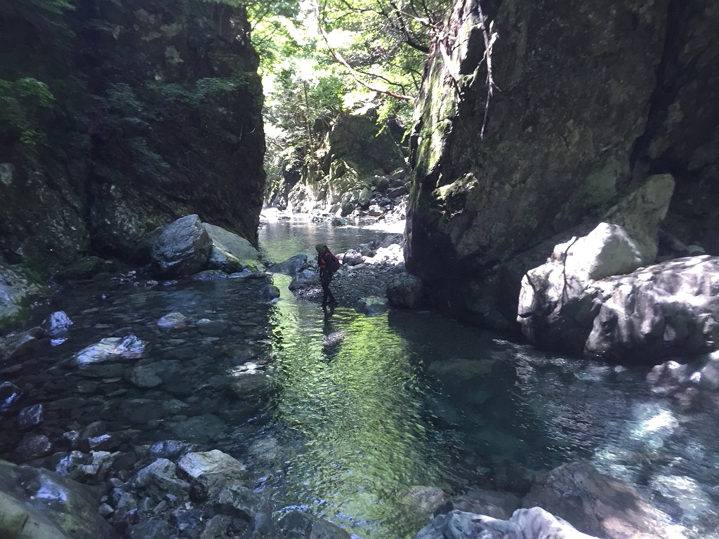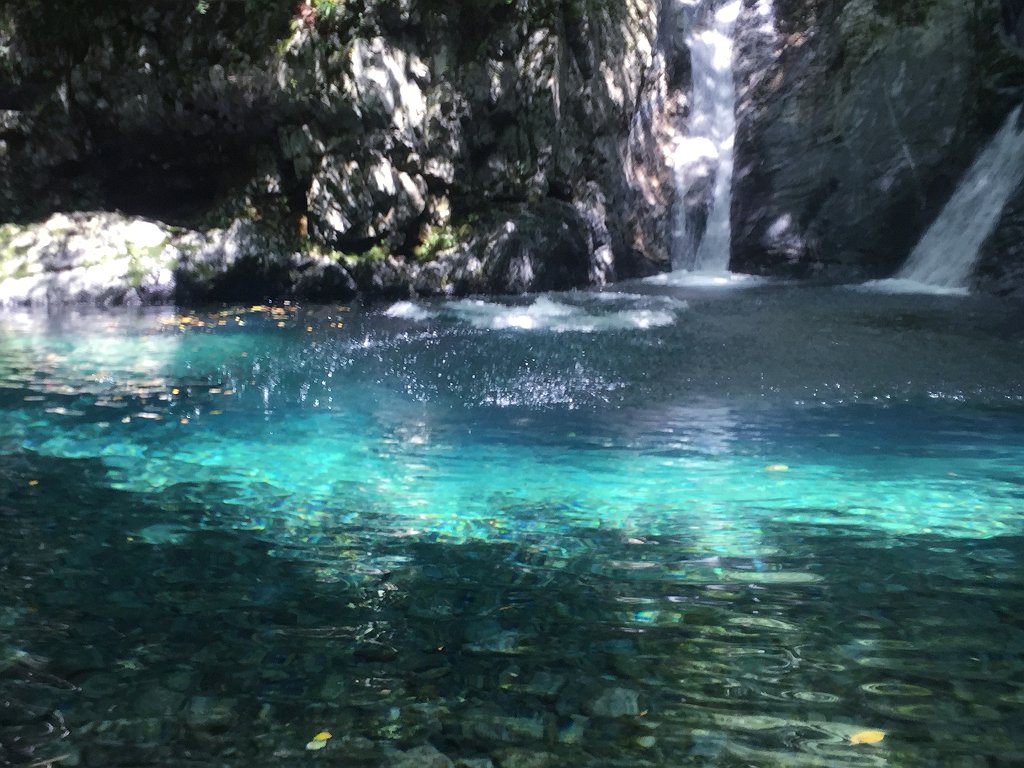 先日いった前鬼のようなコバルトブルーではありませんが、透き通った綺麗な大峰ブルーを見ることはできました。ちなみに釜滝は二つの沢が一つになる神秘的な滝でしたが、その上部のノウナシ谷側の滝も静かで神秘的な感じでした。そして赤鍋滝のスライダーが格別で超楽しかったです!