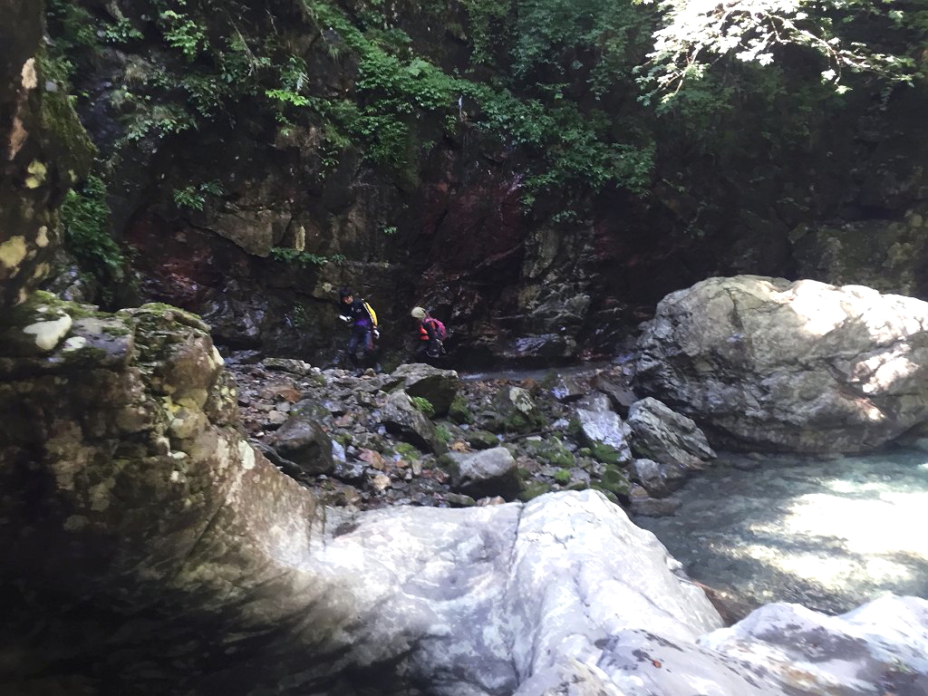 赤鍋滝の上部にきました。ここは向かって右側から一気にスライダーしましたが最高でした!!