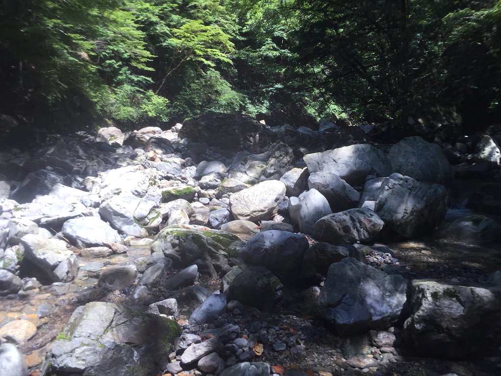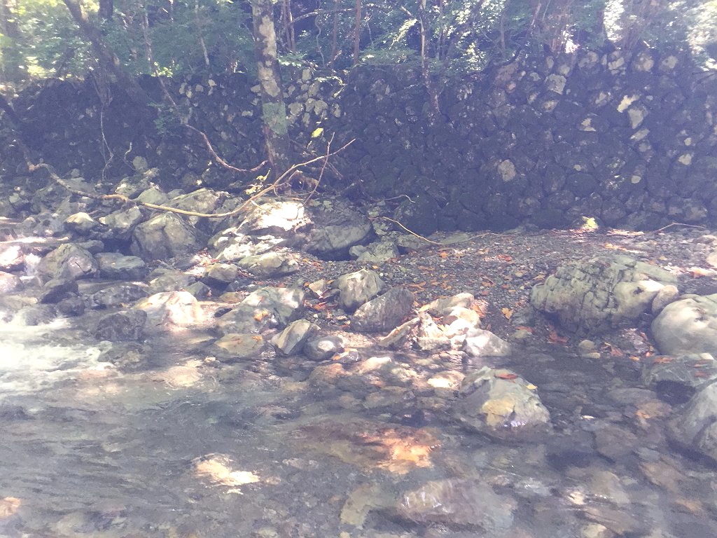 この沢は日陰が多いので全体的に水温が低く冷たい感じで、とくにへっついさんは水温がめちゃ低く超冷たく震えました。