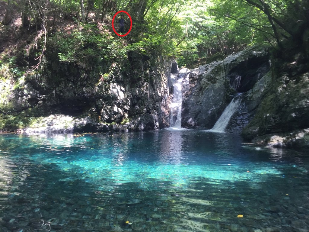 そしてついにひでぶ~さんが赤丸のところから飛び込むことに・・・めっちゃ高いです