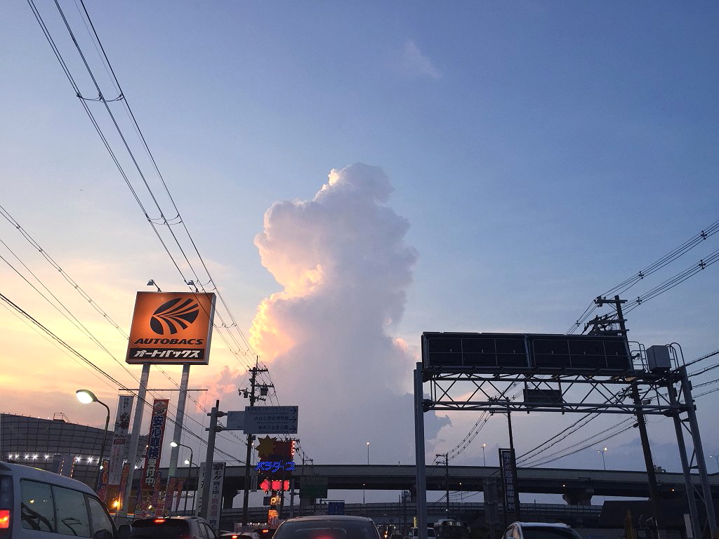 帰り途中、美原IC付近でやばそうな入道雲があって雷が何度か見えました。雨雲レーダーでみてみるとどうやら尼崎あたりが激しいゲリラ豪雨だったとか。確かにその方向でした。