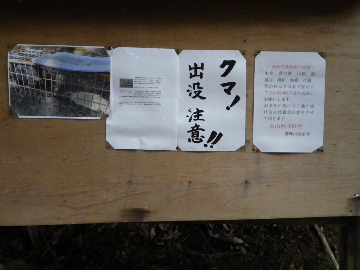 クマ出没注意と大きく書かれているけど、おそらく冬眠するのに迷い込んだ熊のような気がする