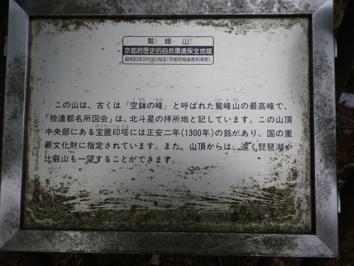 鷲峰山のうんちくが書いている看板があるが、どうやらここが最高峰らしい