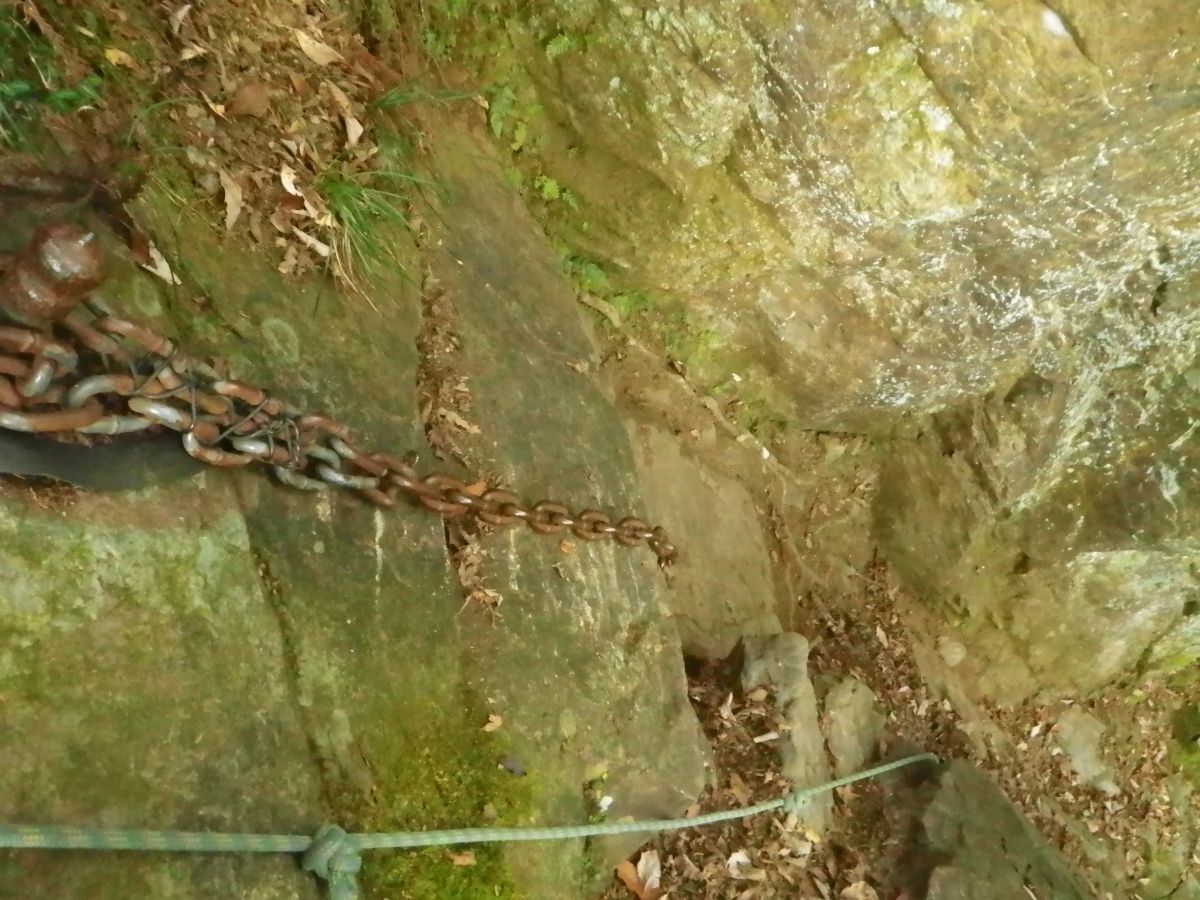 ロープと鎖場の下り。もうこの時点で力を入れすぎたのか膝が笑っていた