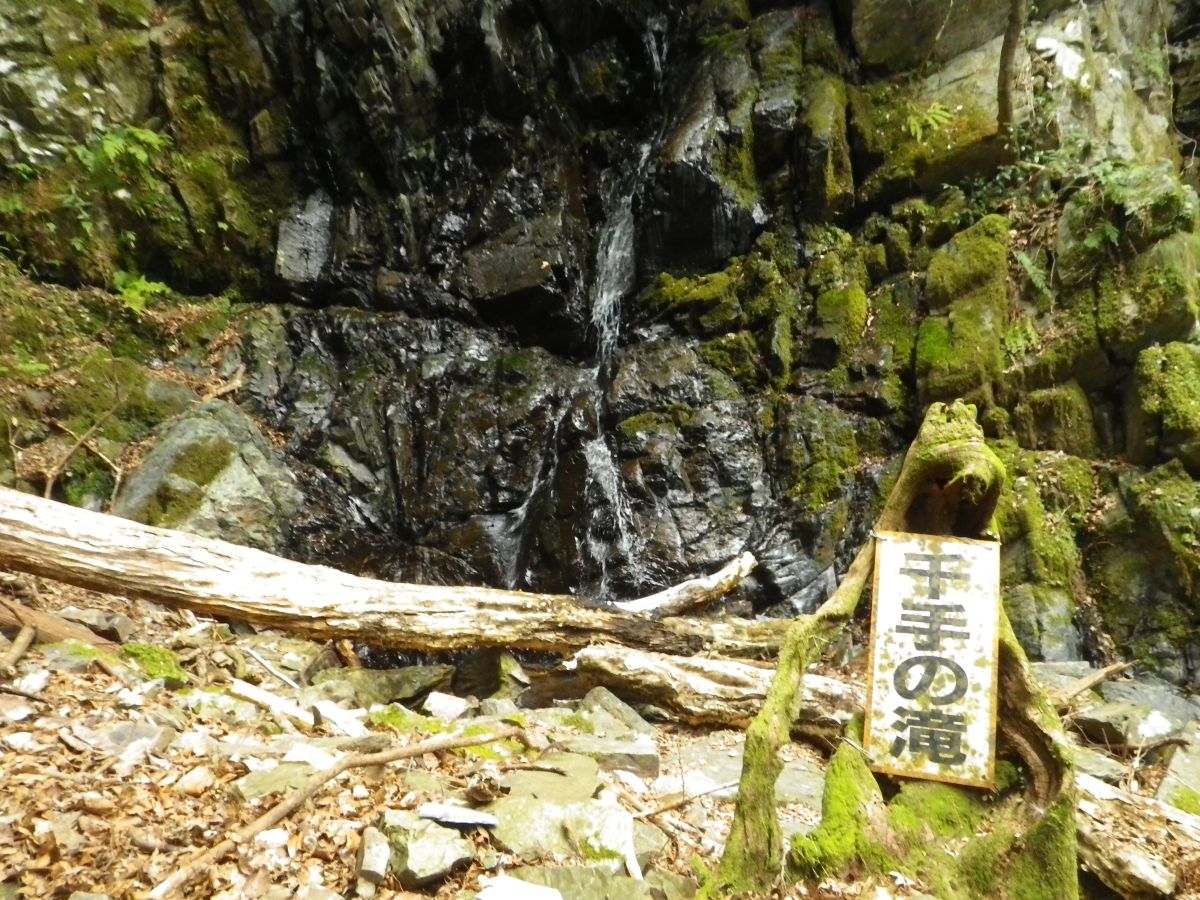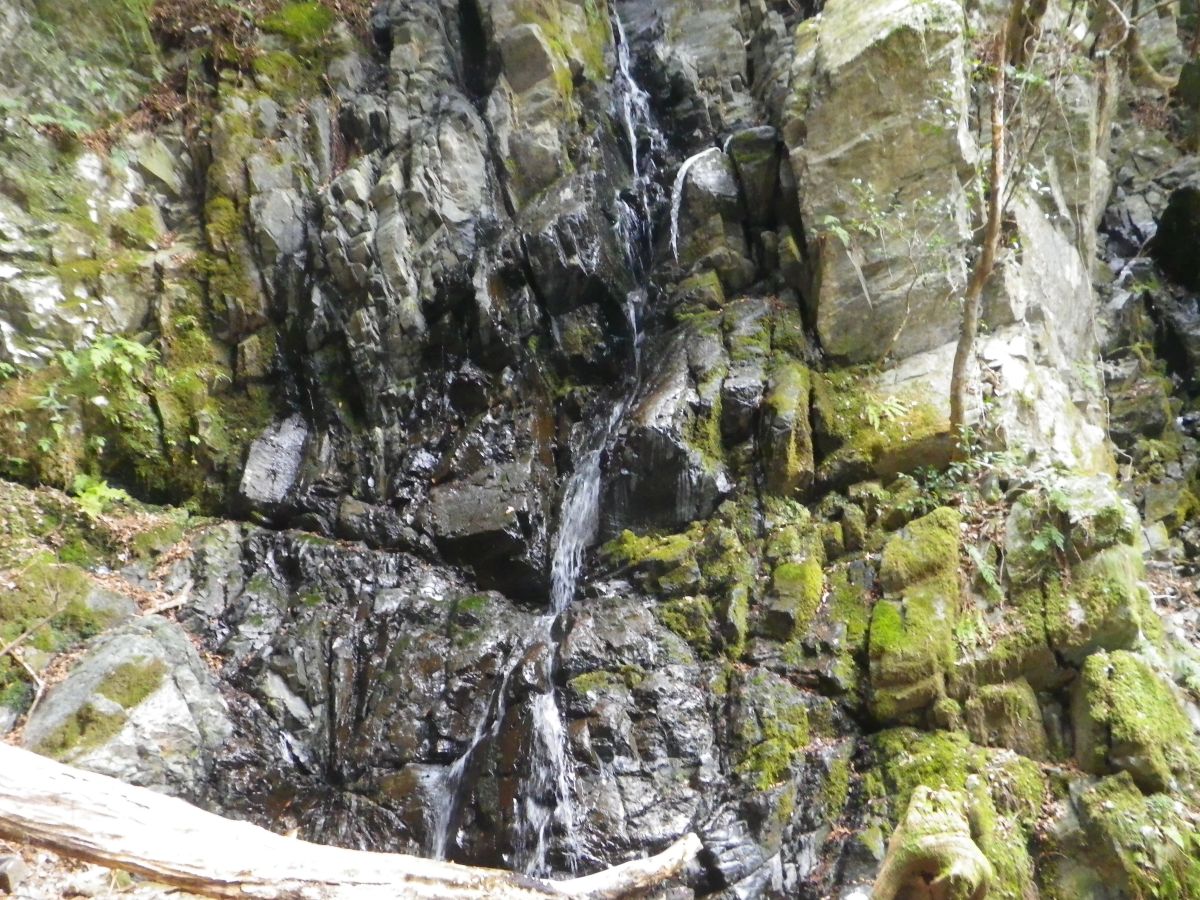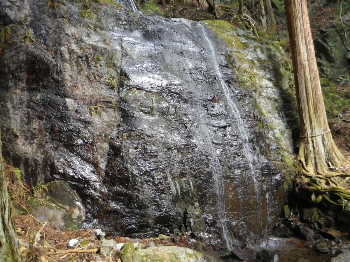 千手の滝から少し下ったところにある五光の滝に到着。看板はなかったけど事前に記事を見ていてこれが五光の滝に間違いない