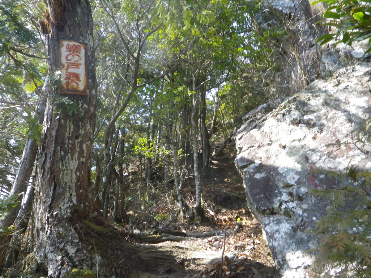 蟻の戸渡りと書かれた看板があった。右側の岩場がそうだと思うんだけど、戸隠とかに比べればこの程度かと思った