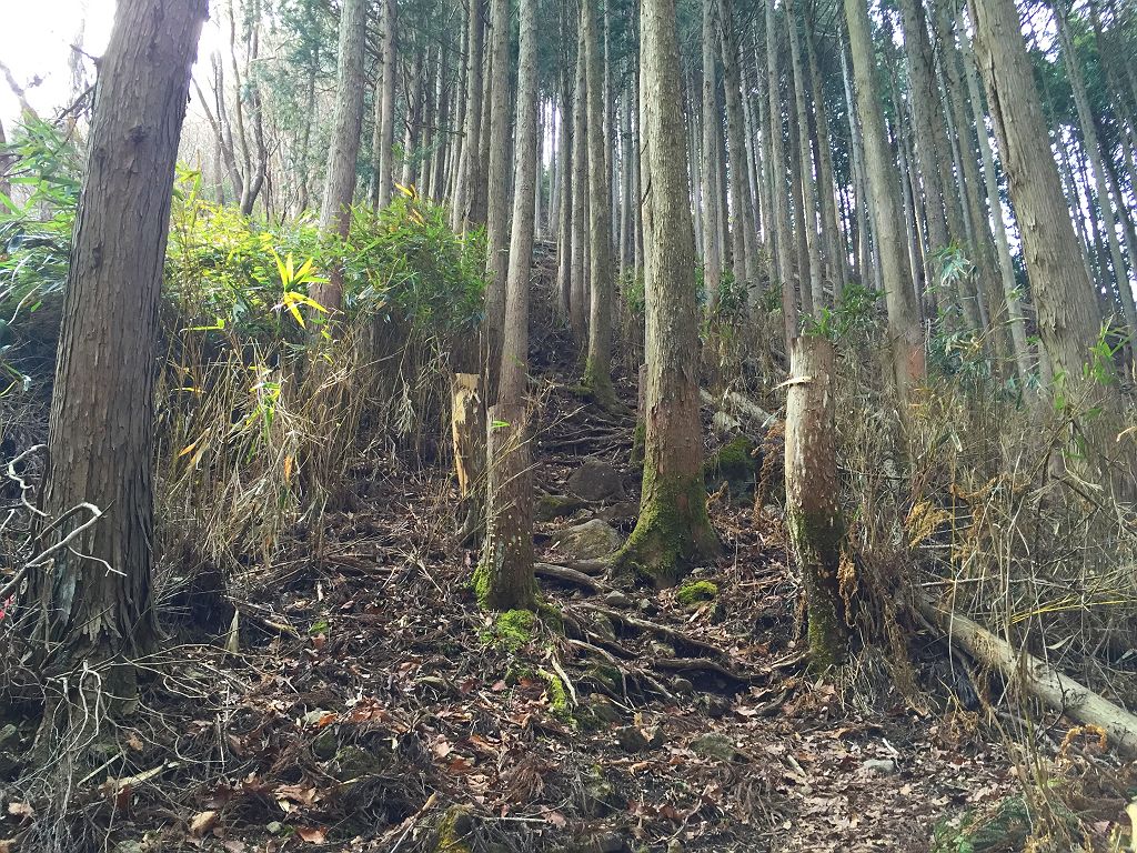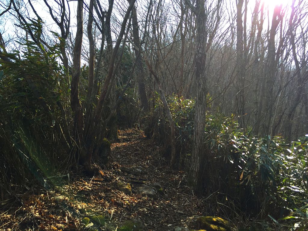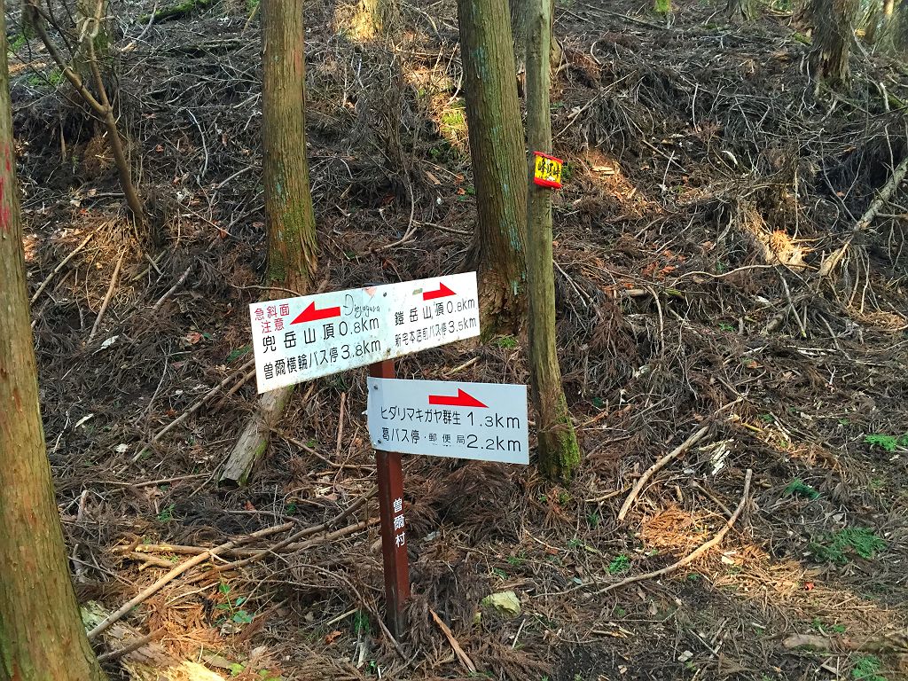 鎧岳から戻ってきて下山口のルートで最初の分岐に戻り下山する