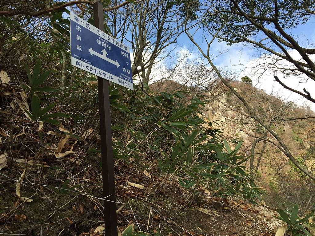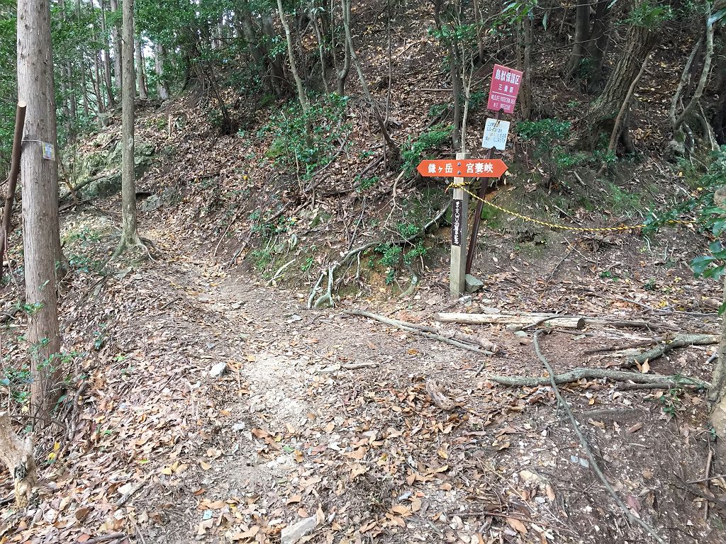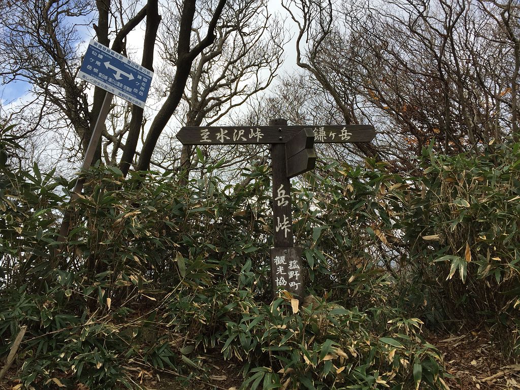 鎌尾根との分岐。岳峠、鎌ヶ岳方面へ