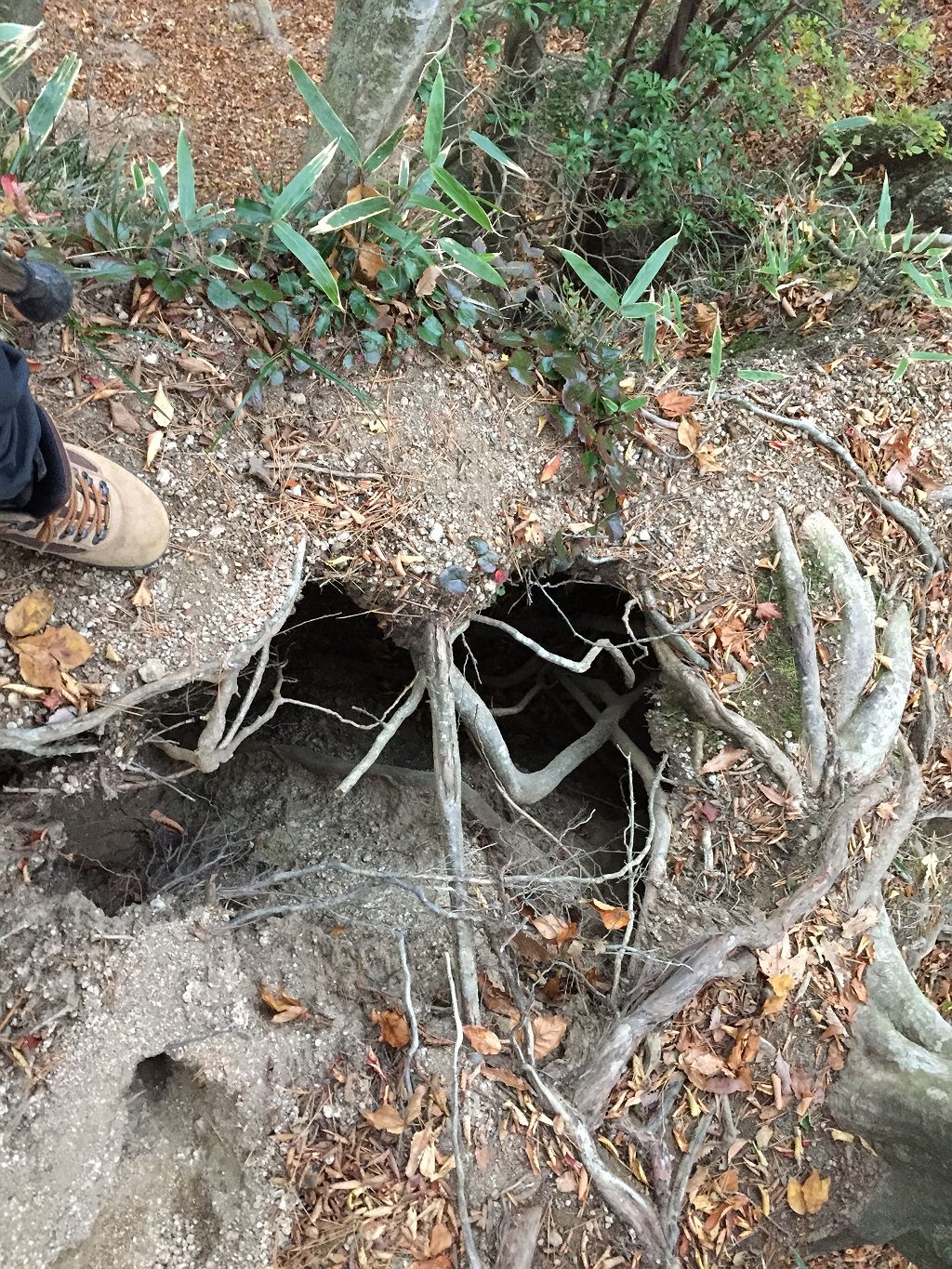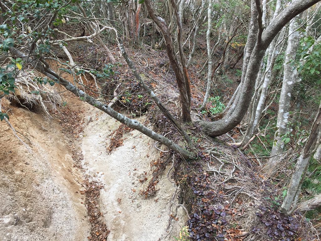 途中、登山道で崩壊した箇所があった。落ちると結構痛そうでした