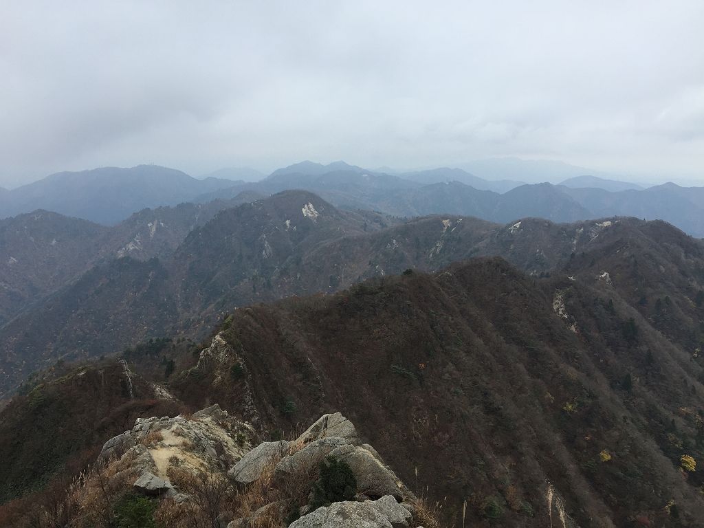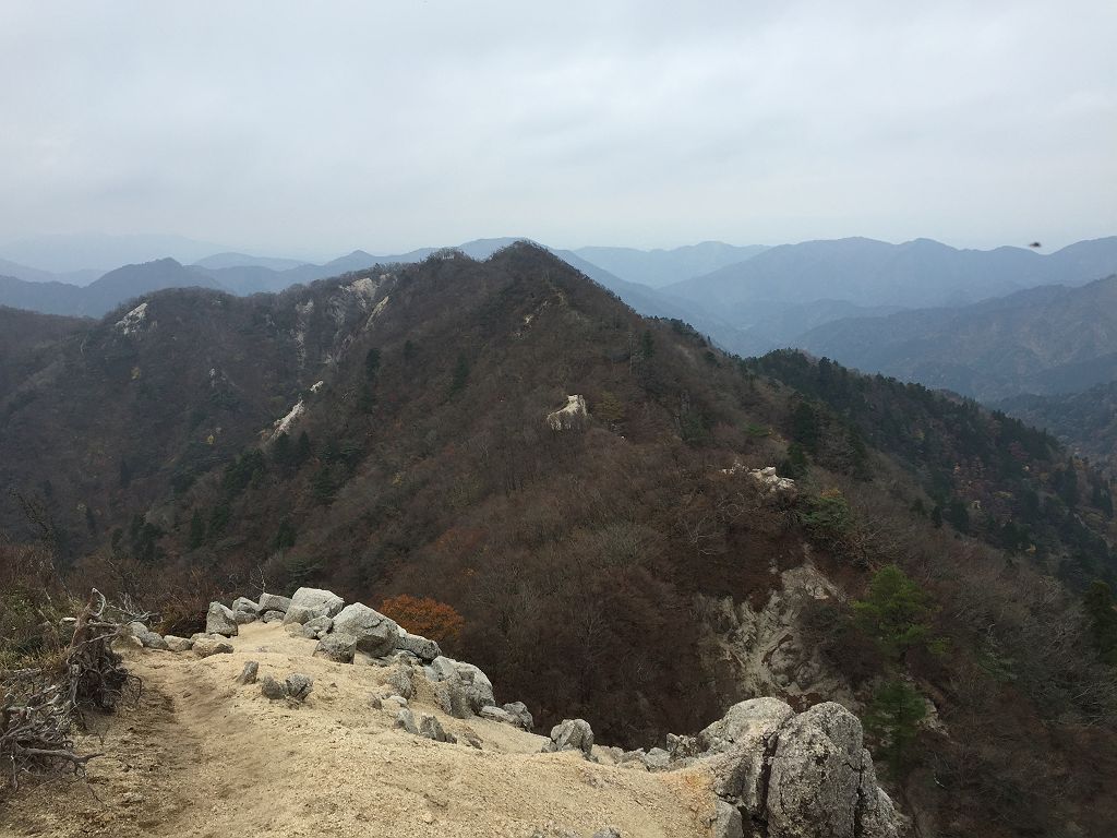 あとでいく水沢峠への稜線。見てのとおり、アップダウンの岩場だった