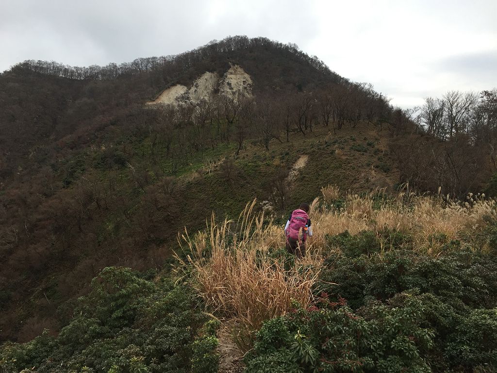 滑りやすい砂場、向こう側の尾根にも行くことになる