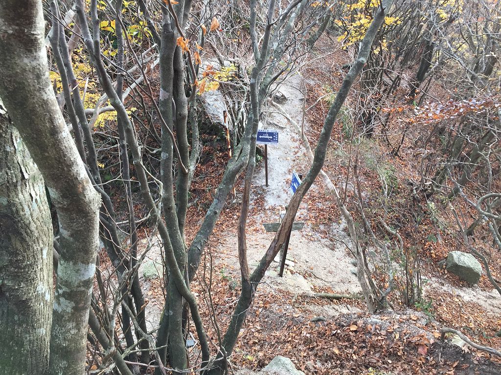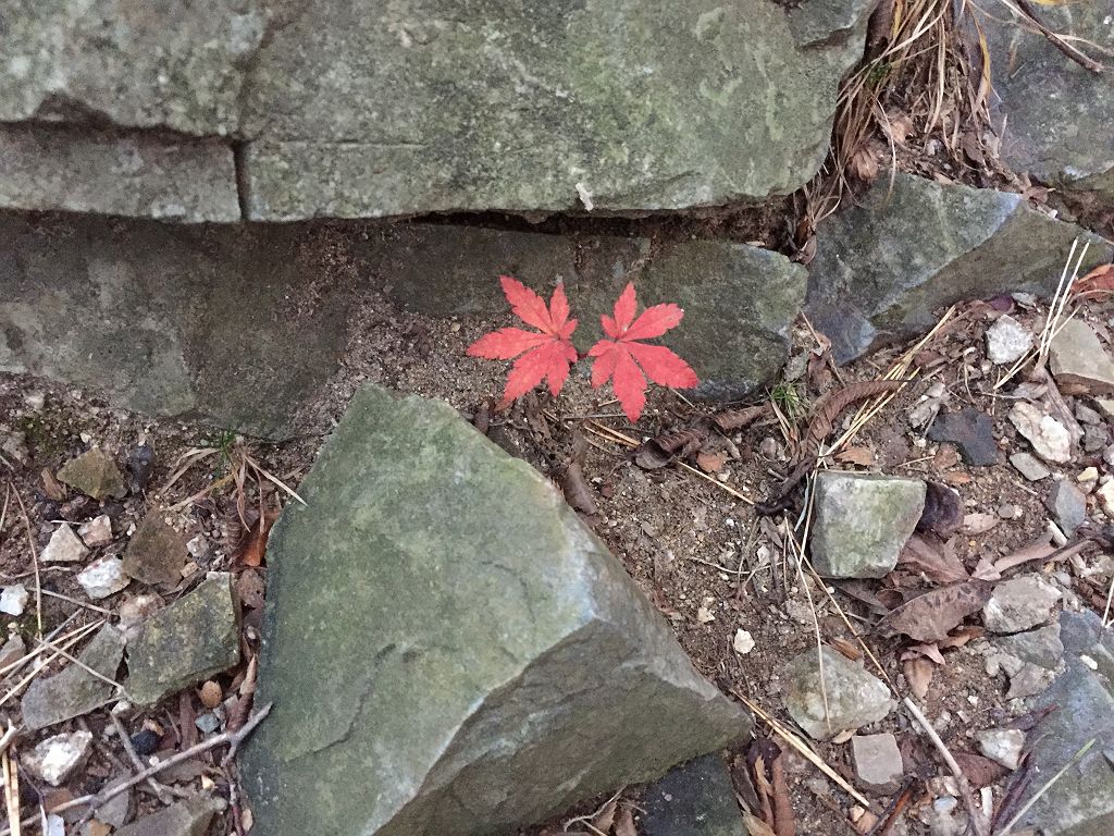この枯葉がかなり滑りやすかった。わずかな距離なのに下るのに数分かかった