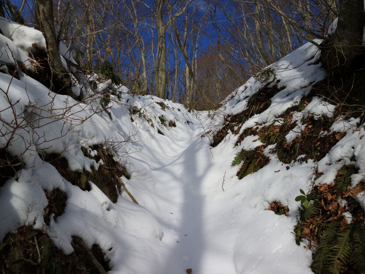 尾根に出るまでがズボズボとハマるしちょっと急登。たかだか標高50mほどなんだけど時間がかかった