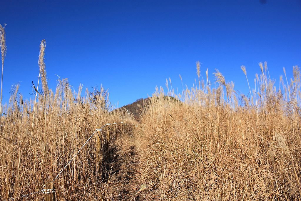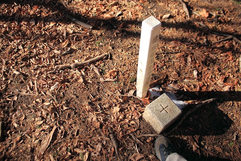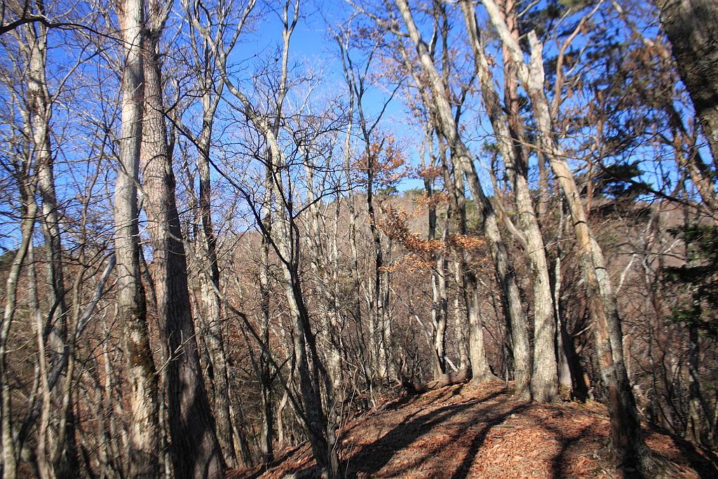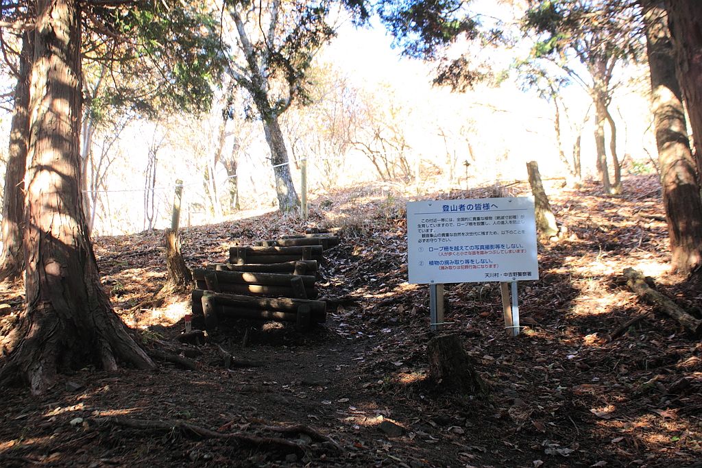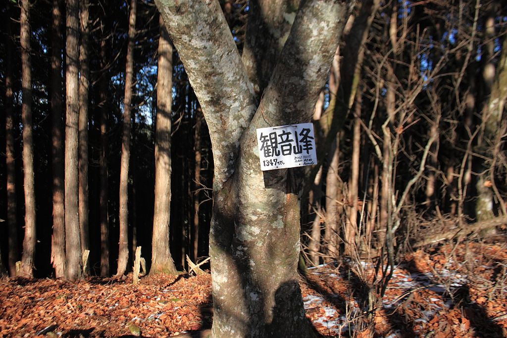 観音峰山のピークまでもルートが見えにくいのでテープ頼り