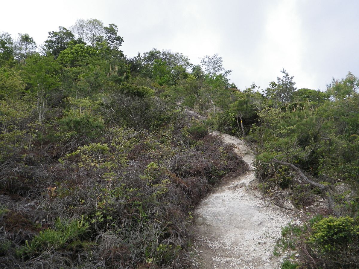 疲れながらもなんとか標高100mほど登って馬ノ背に到着。急登はなかったけど下ったあとの登りだったせいかかなり疲れたのでこの付近で休憩をとった
