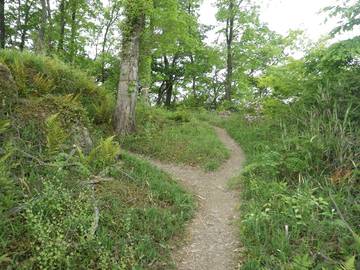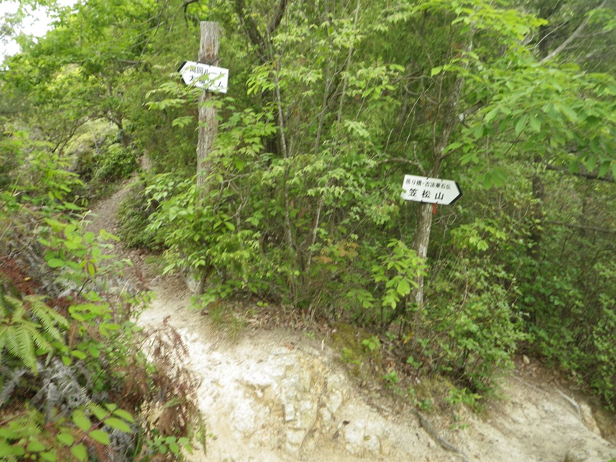 馬ノ背を過ぎればあとはこまめなアップダウンが続いてあっという間に吊り橋手前にあった分岐に戻ってきた。ここを右にいくとすぐに下山道の分岐になる
