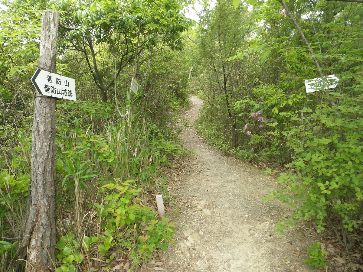 善防山の頂上は城跡だったけど善防師城と呼ばれていたんだろう。地形図を確認すると尾根を利用した構造になっているみたいで、昔の人はすごいと思った