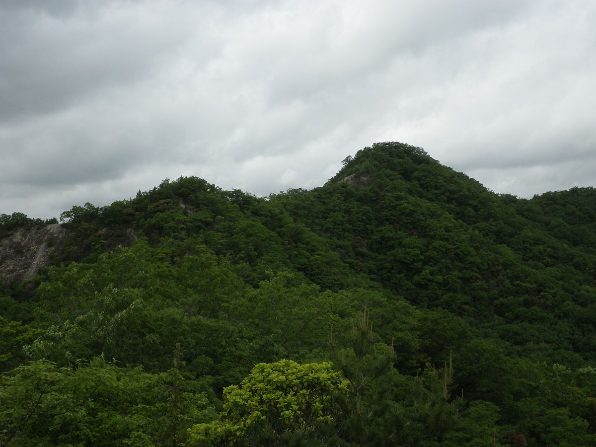 振り返るとさっき登った善防山が見えた。あまり特徴的な形をした山ではないね