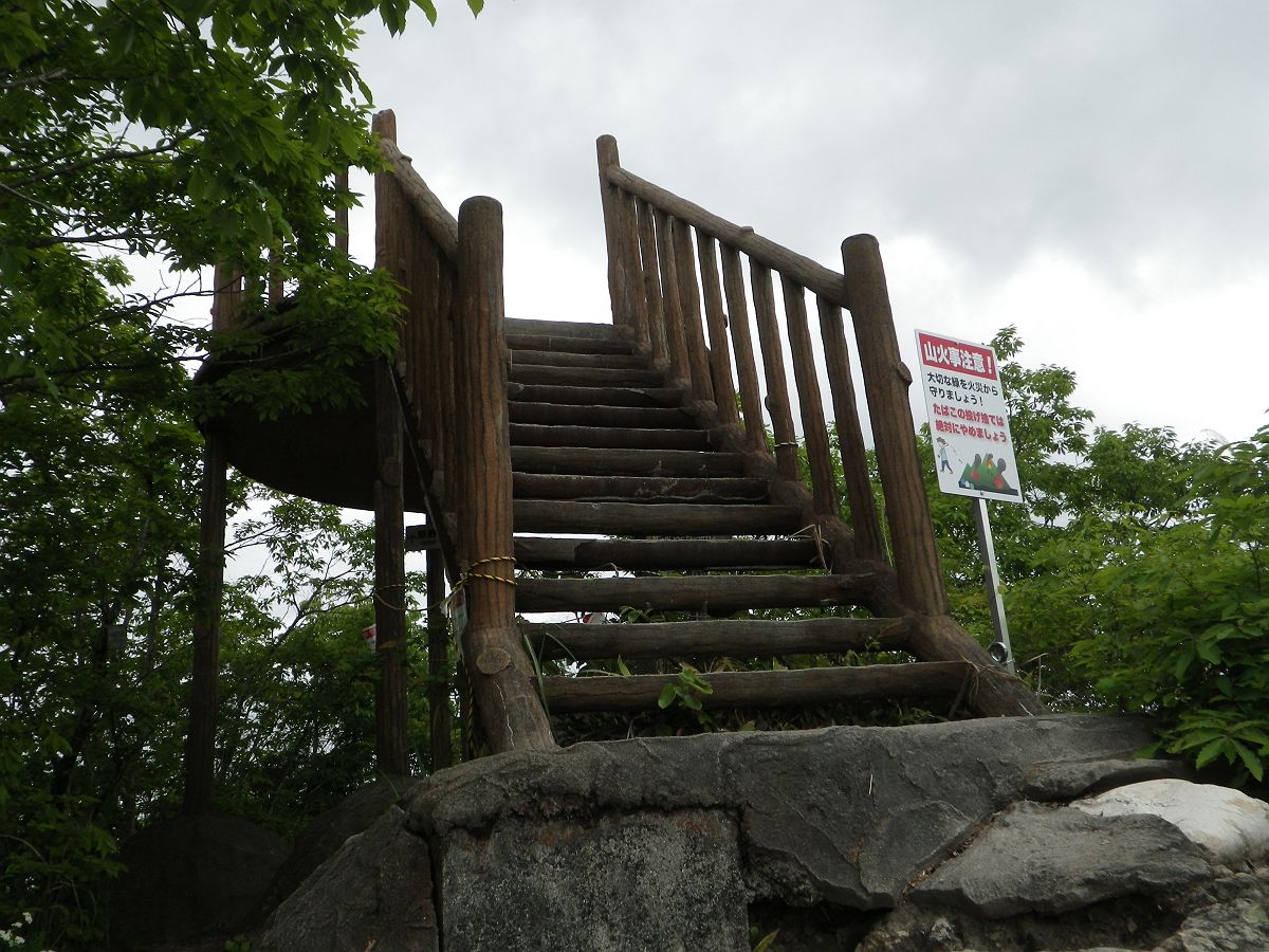 予想より登りは短くて笠松山山頂の展望デッキ下まで登ってくることができた