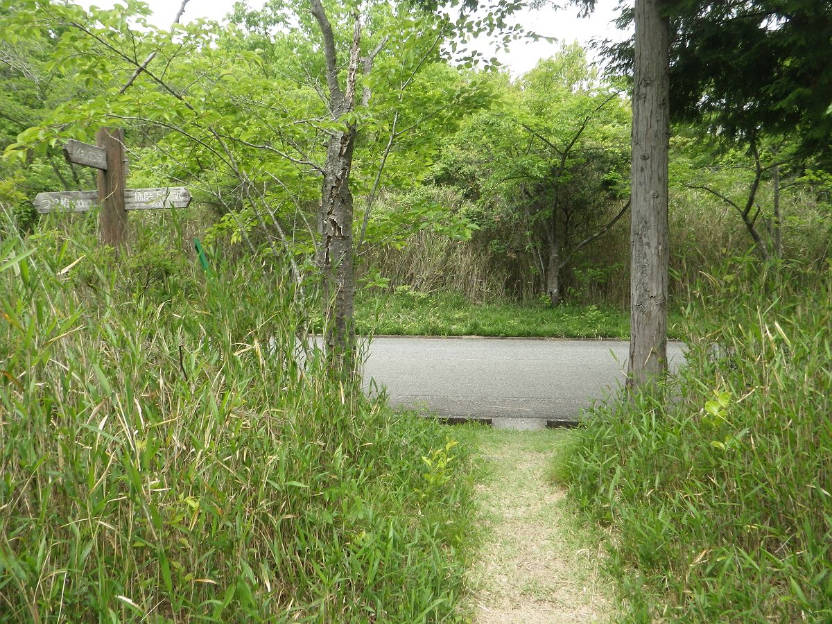 あっという間に道路に出た。ここも登山口ぽいけど、道標があるだけで何も書いてなかった。道路を右へ行くんだけど、左側に駐車場があったのでそこに駐車して最初に道路を歩いていればよかった