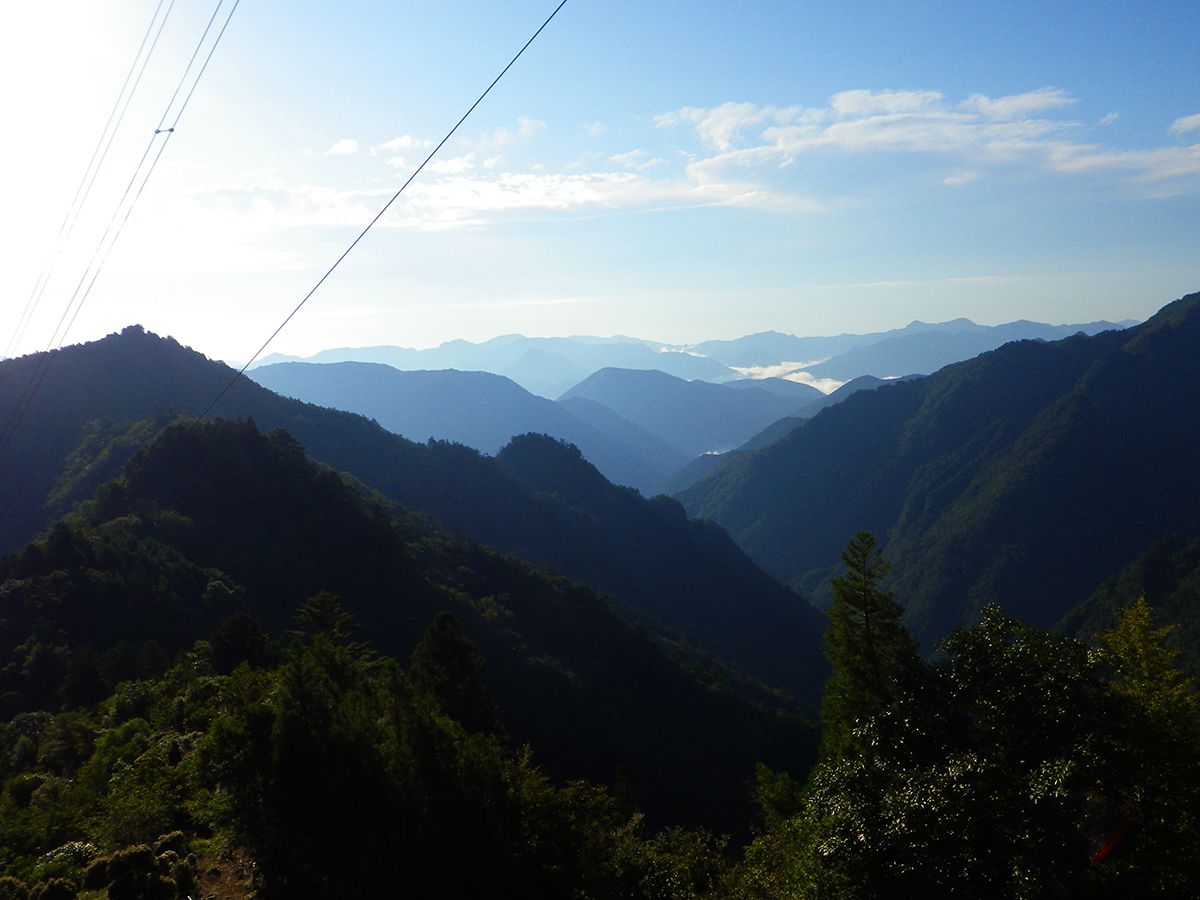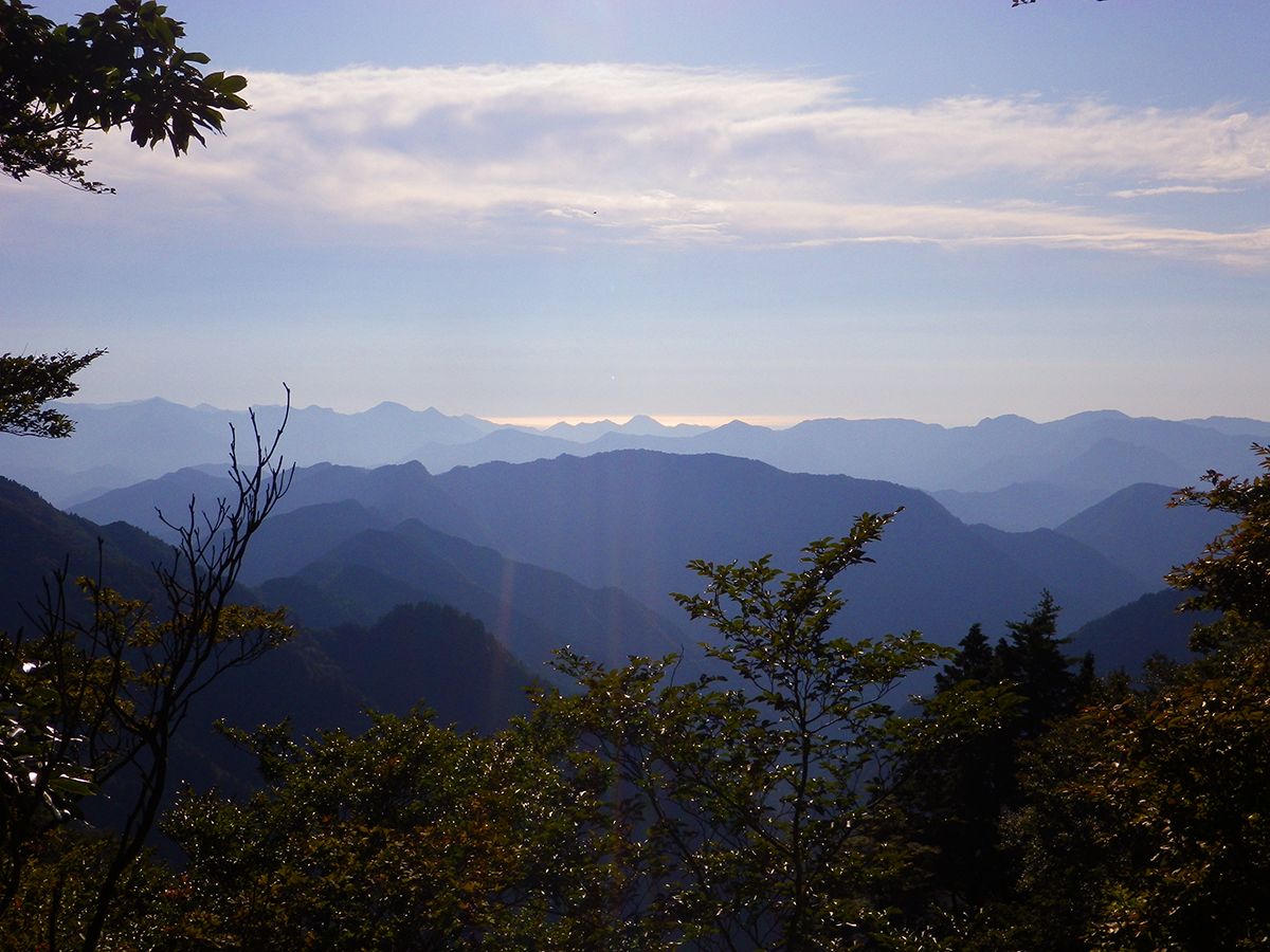 鉄塔から北側の展望が望めた。大峰の山なんだろうけど何の山が見えてるのかわからない