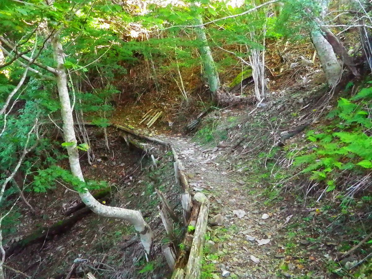 トラバースの道になった。ここまでくるともう少し。トラバースの終わりが奥駈道行仙宿になる