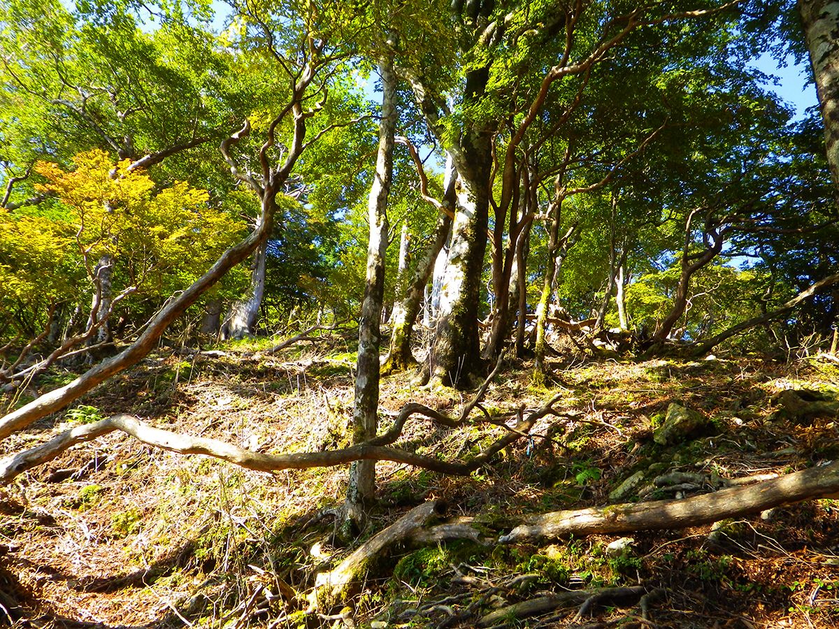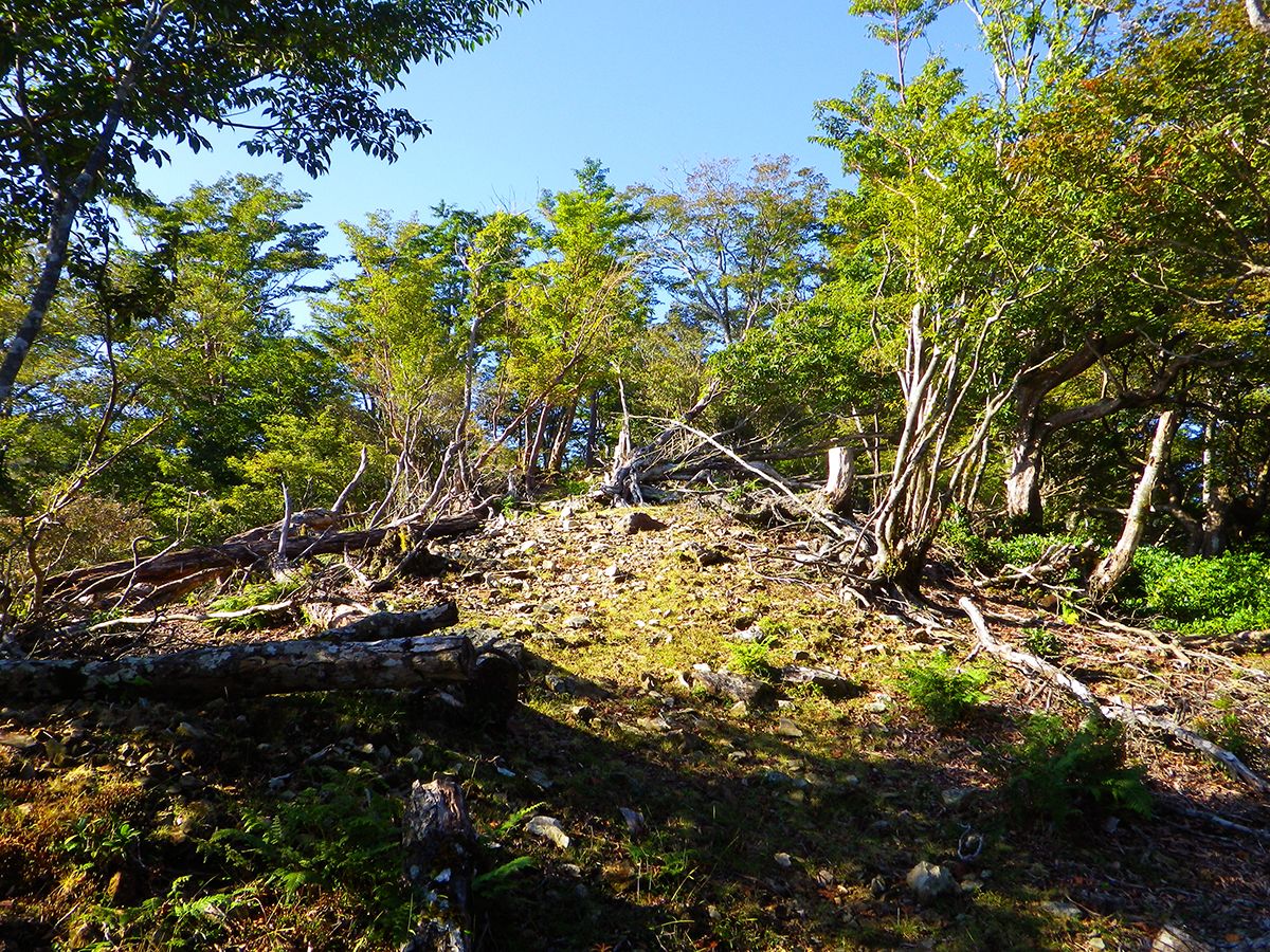 大峰ぽい雰囲気になってきた。こういう倒木があったりちょっとした草原があったりするのがいい感じなんよね