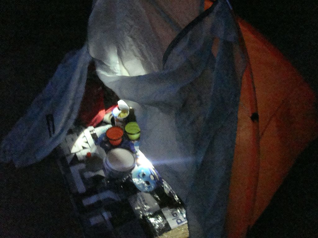 ハーフテント内でコーヒーを作って夜景を満喫する