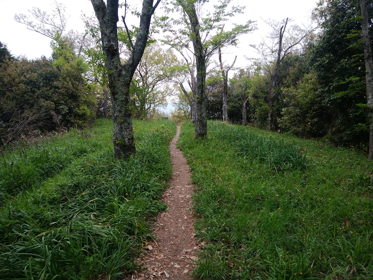 楠公寺よりさらに舗装道をあがった山頂直下。ここから入山