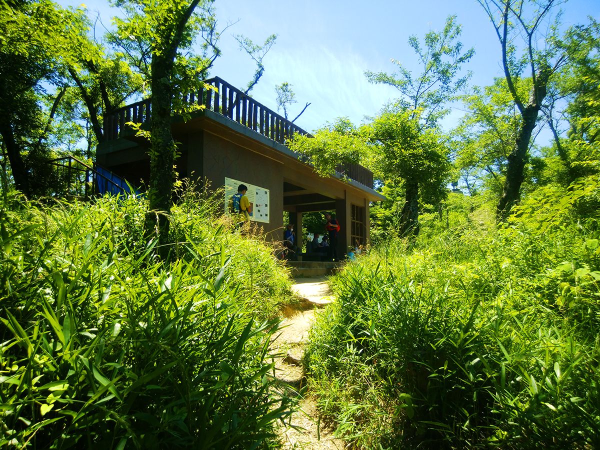 河内飯盛山の展望台に到着。山頂はすぐそこだし、展望台は人が多いので山頂で休憩することにした