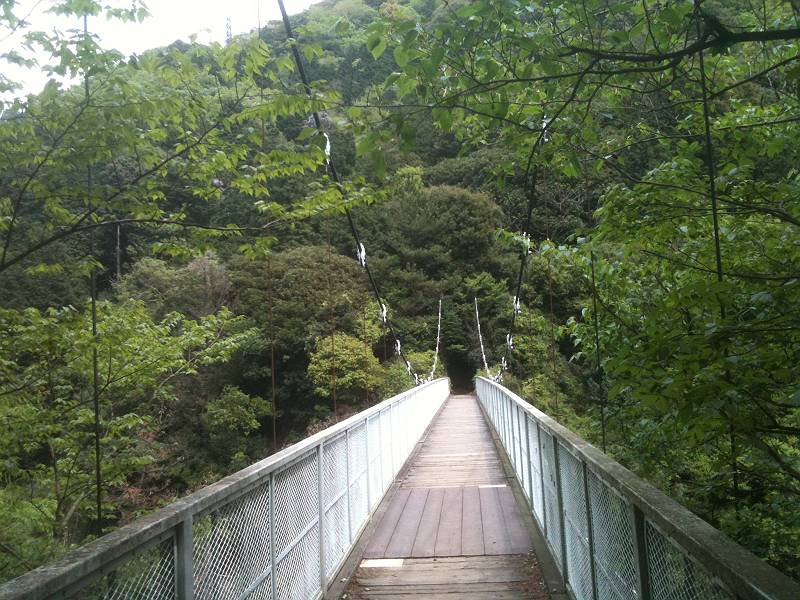 菊水山からかなり下らされて天王吊橋を渡る。ここから鍋蓋山までまた登りだ