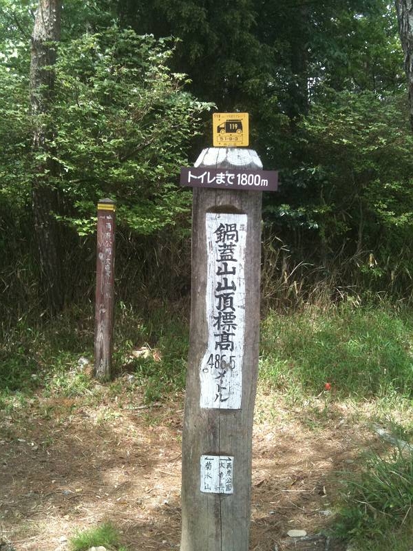鍋蓋山山頂(486.5m)に到着。下ってまた登ってとしんどかった