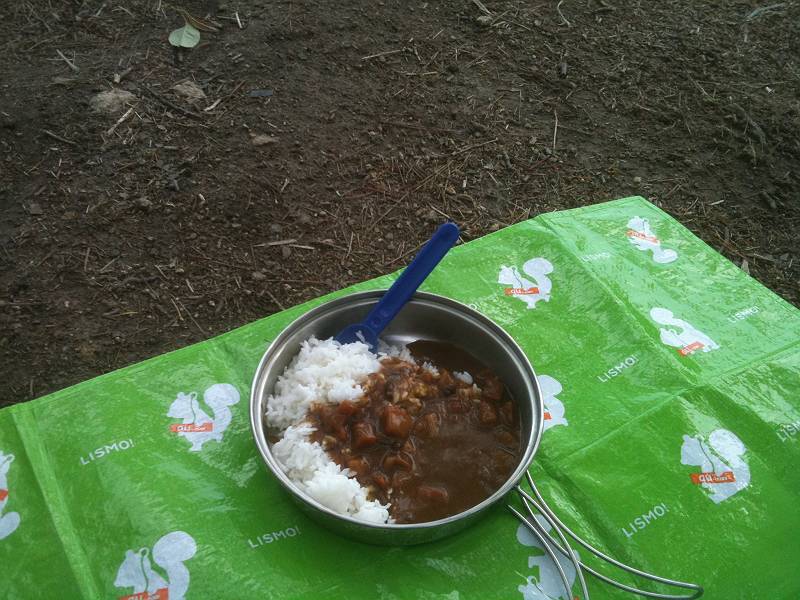 今日の昼食はカレーにした。鍋蓋山の山頂は広くなっているので本当に鍋とかもできそう